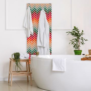 FUNKTION: Die banjado Wandgarderobe mit Motiv Fischgräten ist Ihr täglicher Begleiter. Zuverlässig hängen hier Ihre Jacken und Mäntel griffbereit. Das Echtglas ist Ihr Paneel auch beschreibbar und wieder abwischbar. DESIGN: Sie erhalten eine Garderobenleiste aus elegantem Echtglas mit dem Farbbrillanten Motiv Fischgräten hinterklebt. Das Design ist zeitlos klassisch, ohne dabei auf Funktionalität zu verzichten. Suchen Sie aus einer Vielzahl von Motiven das für Ihre Einrichtung Passende aus. DETAILS: Die Flurgarderobe besteht aus 4mm gehärtetem Sicherheitsglas. Sie ist 50cm breit, 125cm hoch und 6cm tief. Die Garderobenhaken zur Selbstmontage präsentieren sich in Edelstahl-Optik, ebenso die Abstandshalter für die Wandmontage. Ihre neue Garderobe ist sofort einsatzbereit. NUTZEN: Ihre neue Garderobe hält nicht nur zuverlässig Ihre Kleidung, sie ist auch optisch ein Blickfang. Durch das Glas können Sie an der Garderobe mit wasserlöslichen Kreidestiften oder Whiteboard-Markern auch Nachrichten hinterlassen. BANJADO: Wir sind ein kleines kreatives Team aus Sachsen und entwickeln Produkte die Design und Funktionalität verbinden sollen. Viel Freude mit Ihrer neuen Garderobe wünscht das banjado-Team!