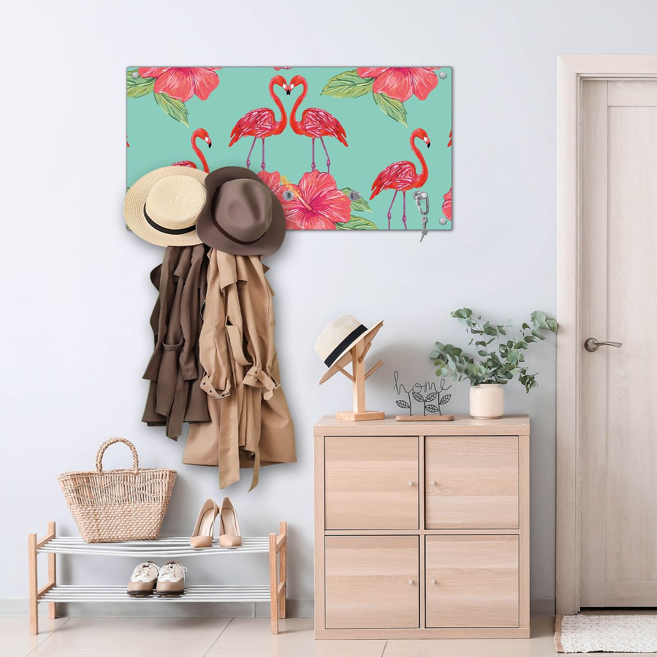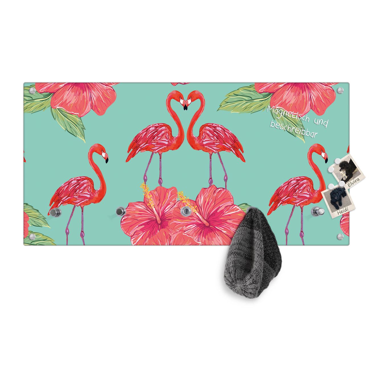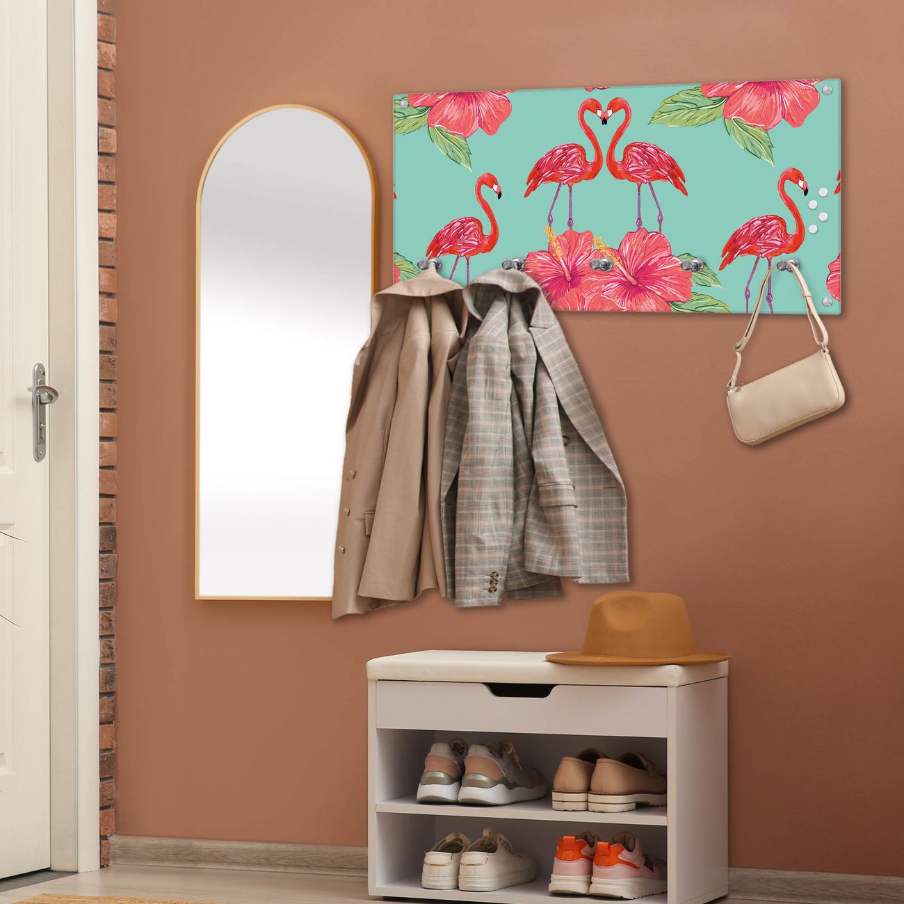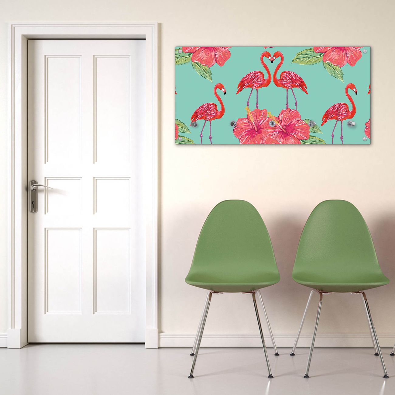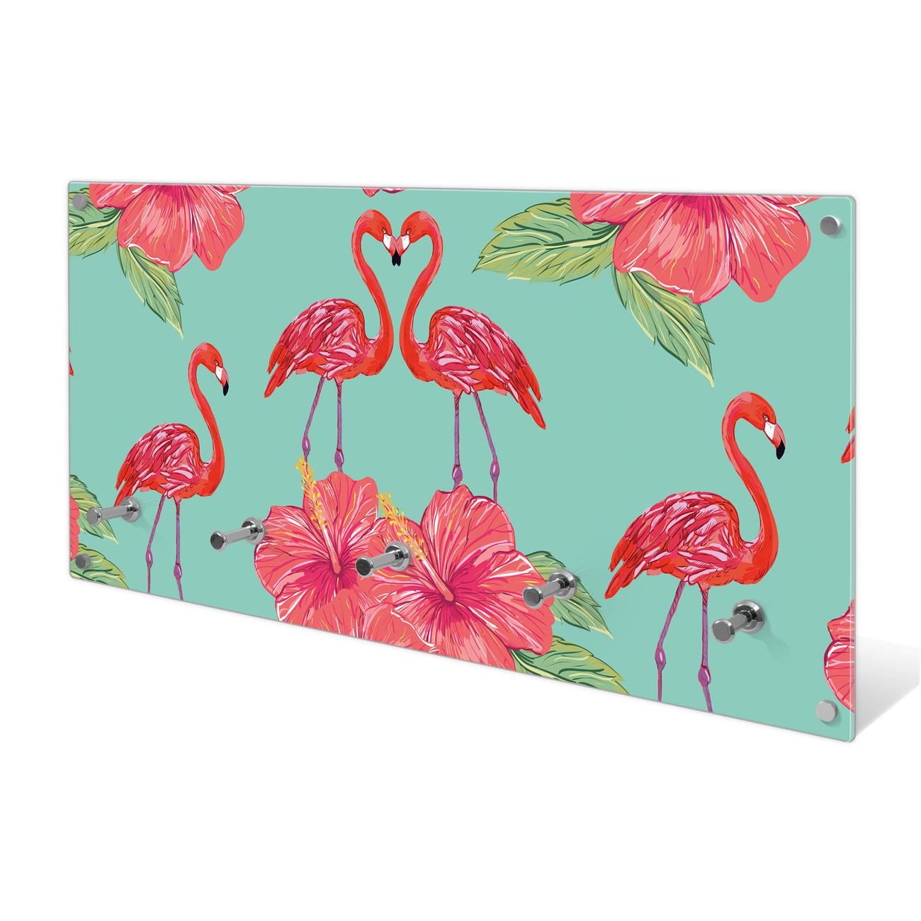 Wandgarderobe Glas 80x40cm Motiv Flamingo Liebe