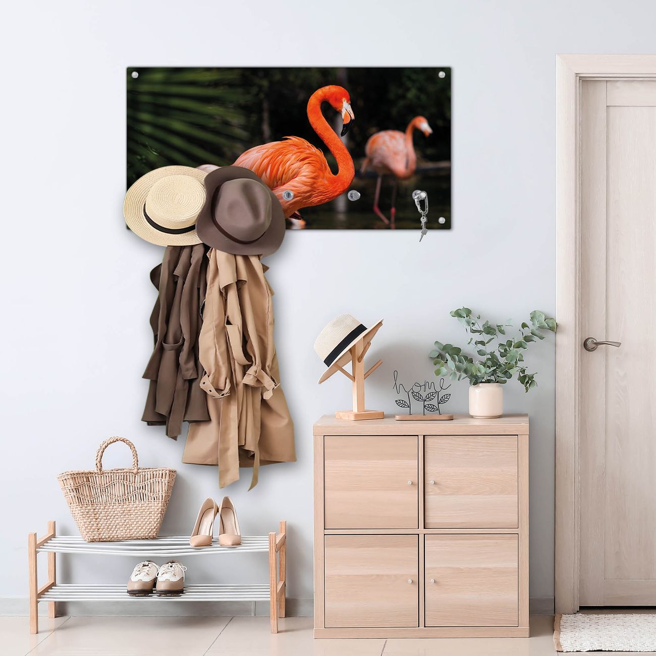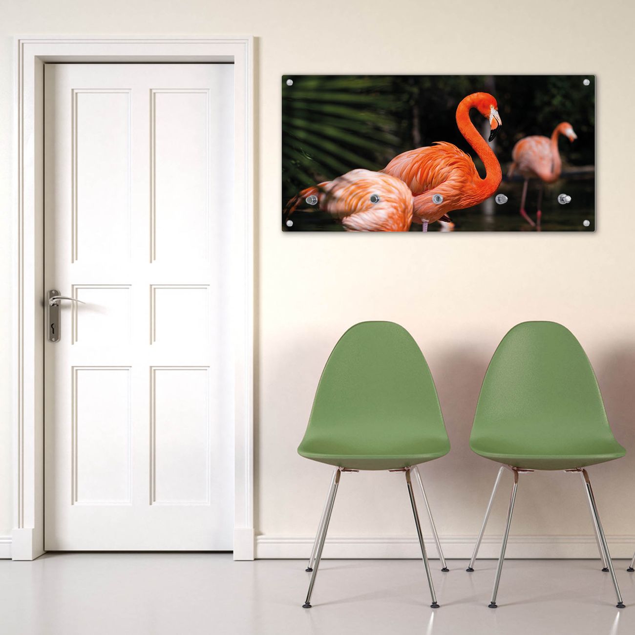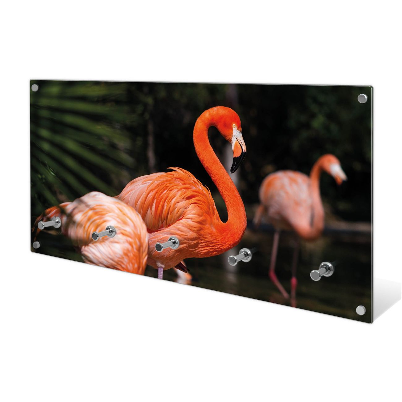 Wandgarderobe Glas 80x40cm Motiv Flamingo