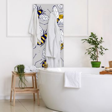 FUNKTION: Die banjado Wandgarderobe mit Motiv Fliegen und Bienen ist Ihr täglicher Begleiter. Zuverlässig hängen hier Ihre Jacken und Mäntel griffbereit. Das Echtglas ist Ihr Paneel auch beschreibbar und wieder abwischbar. DESIGN: Sie erhalten eine Garderobenleiste aus elegantem Echtglas mit dem Farbbrillanten Motiv Fliegen und Bienen hinterklebt. Das Design ist zeitlos klassisch, ohne dabei auf Funktionalität zu verzichten. Suchen Sie aus einer Vielzahl von Motiven das für Ihre Einrichtung Passende aus. DETAILS: Die Flurgarderobe besteht aus 4mm gehärtetem Sicherheitsglas. Sie ist 50cm breit, 125cm hoch und 6cm tief. Die Garderobenhaken zur Selbstmontage präsentieren sich in Edelstahl-Optik, ebenso die Abstandshalter für die Wandmontage. Ihre neue Garderobe ist sofort einsatzbereit. NUTZEN: Ihre neue Garderobe hält nicht nur zuverlässig Ihre Kleidung, sie ist auch optisch ein Blickfang. Durch das Glas können Sie an der Garderobe mit wasserlöslichen Kreidestiften oder Whiteboard-Markern auch Nachrichten hinterlassen. BANJADO: Wir sind ein kleines kreatives Team aus Sachsen und entwickeln Produkte die Design und Funktionalität verbinden sollen. Viel Freude mit Ihrer neuen Garderobe wünscht das banjado-Team!
