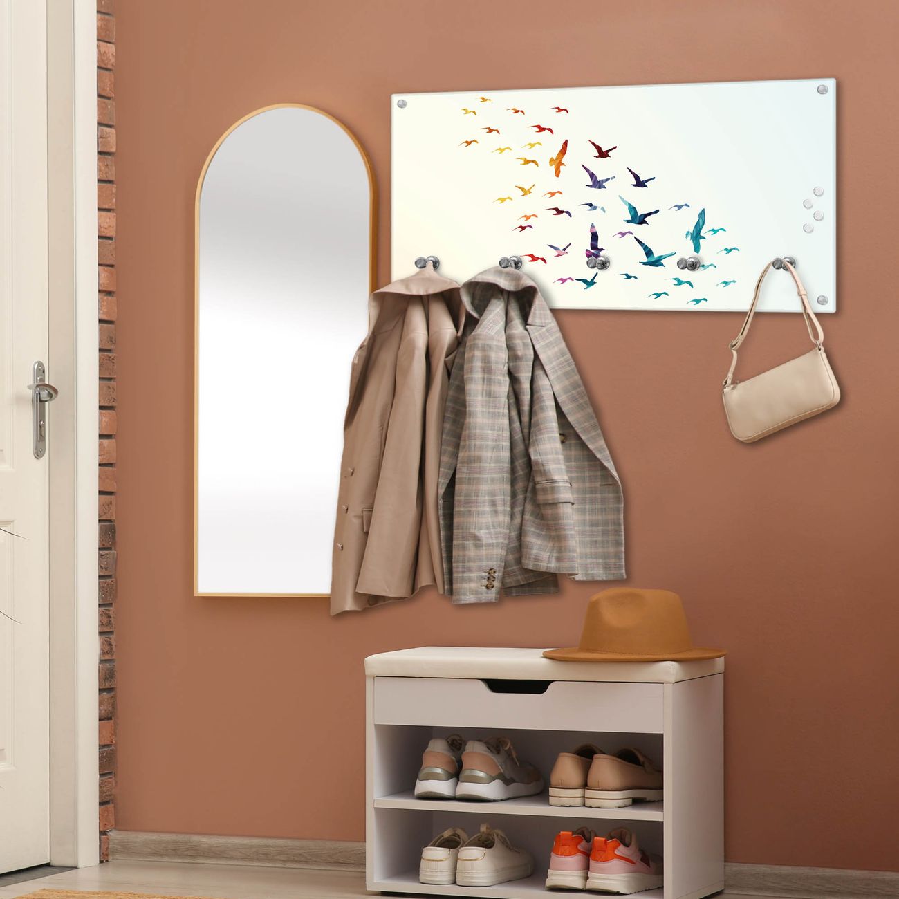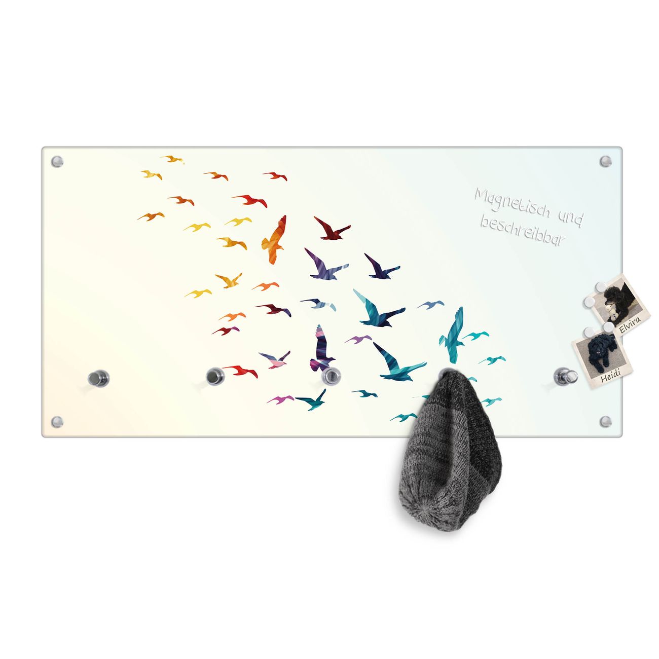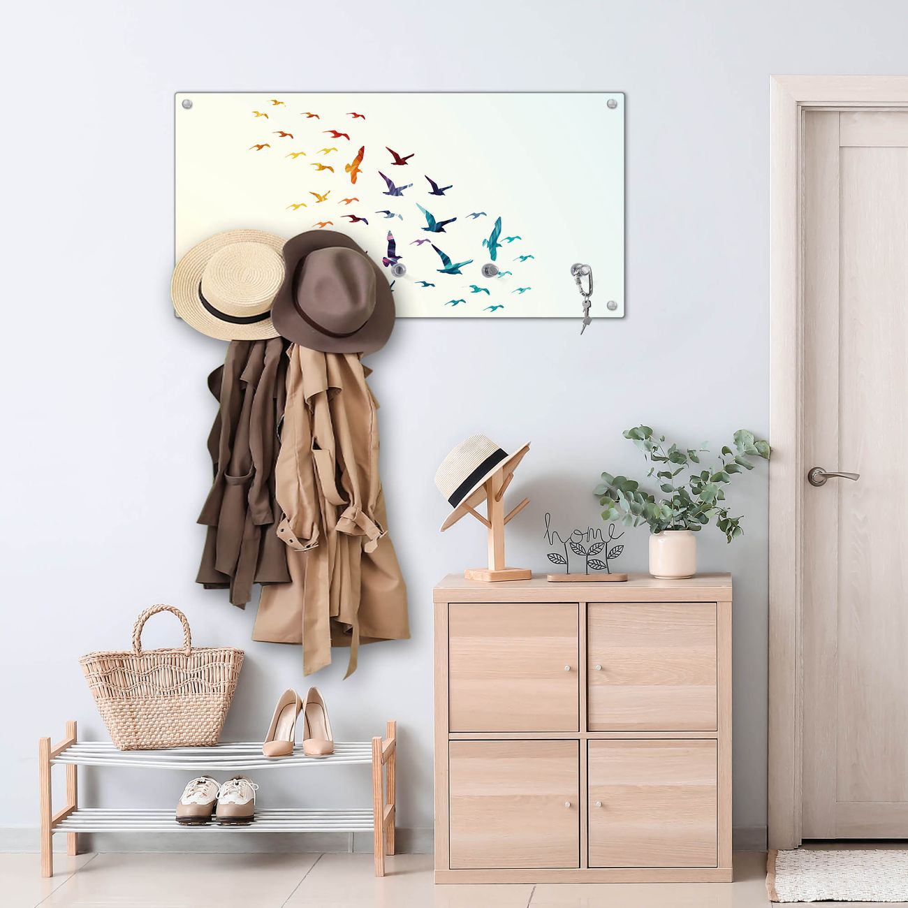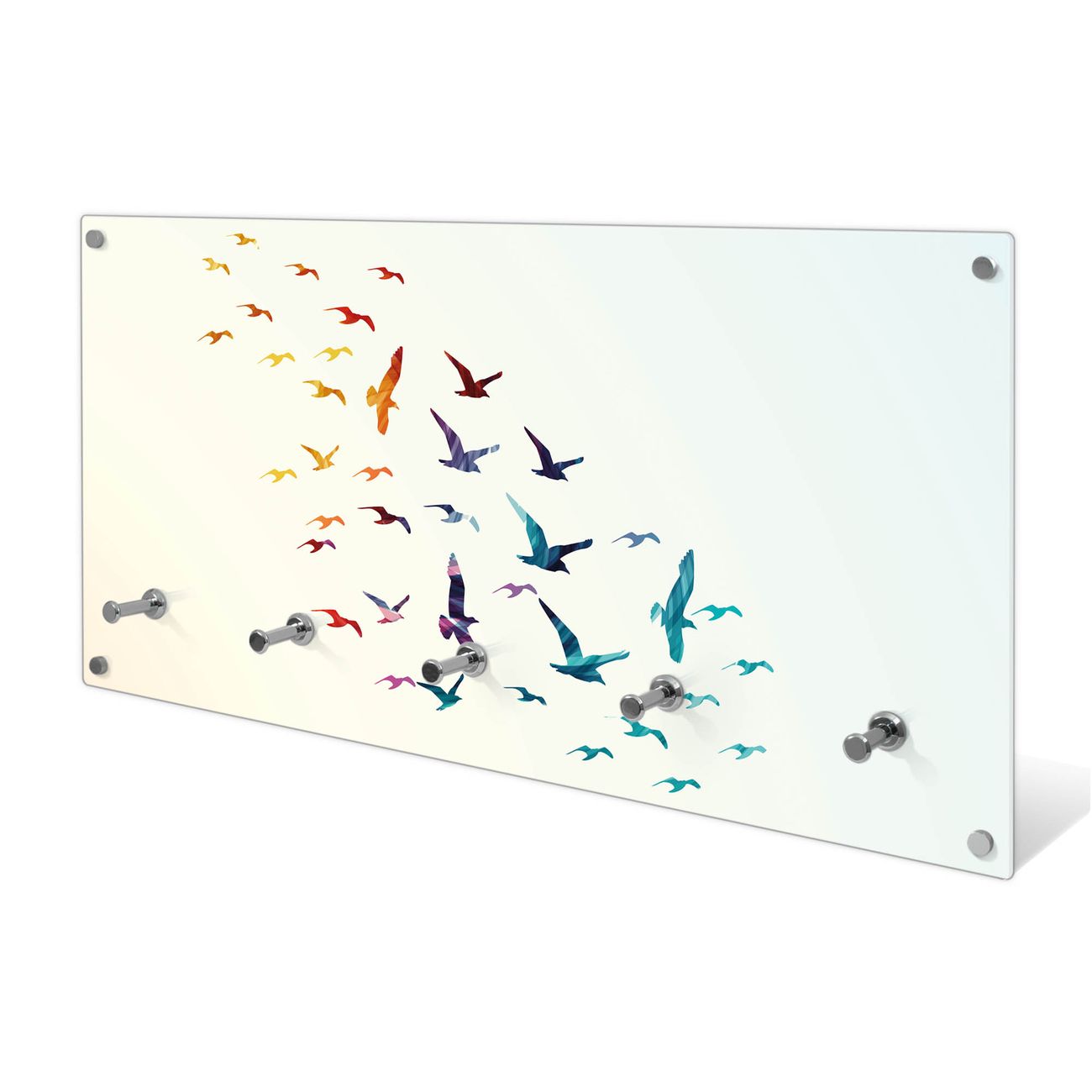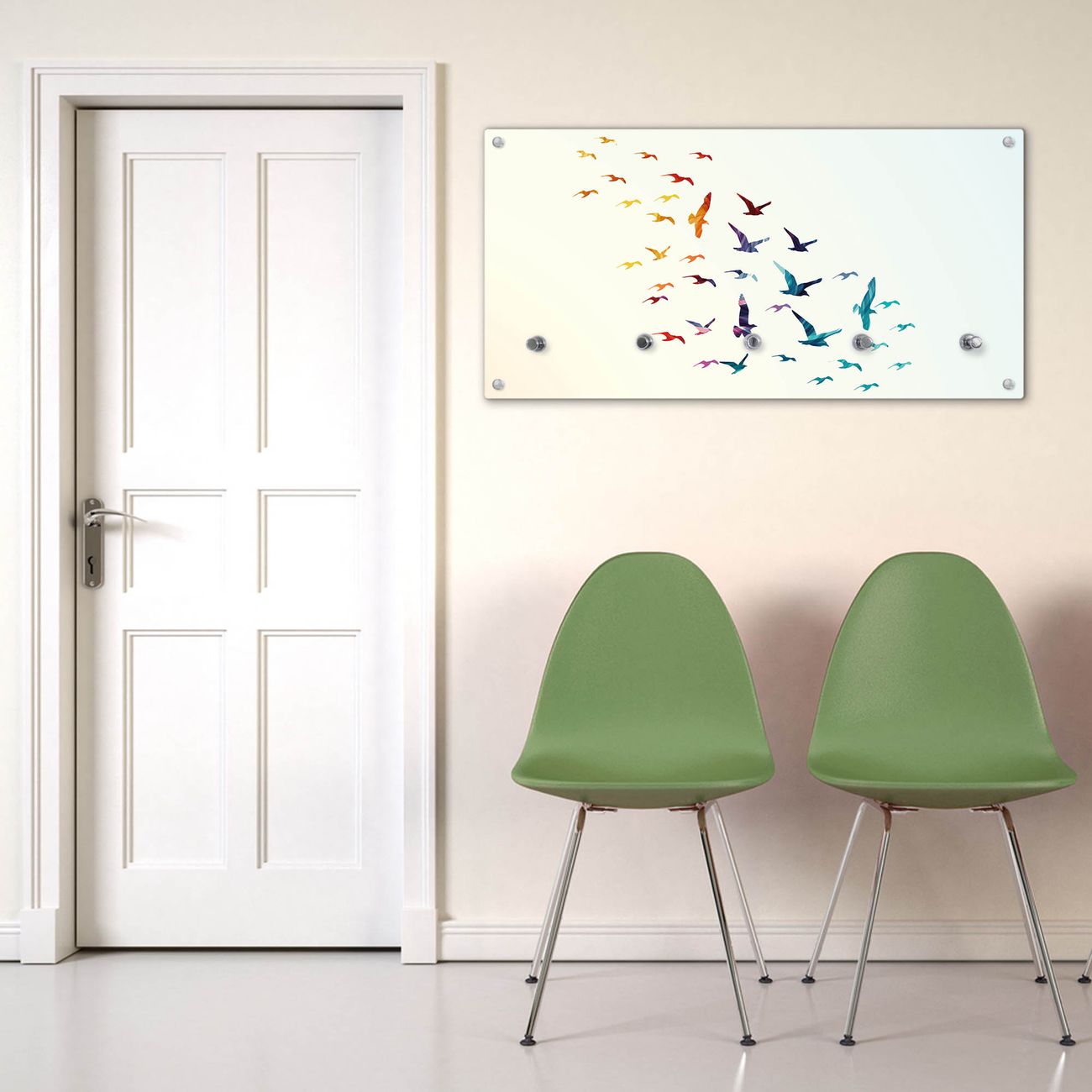 Wandgarderobe Glas 80x40cm Motiv Fliegende Vögel