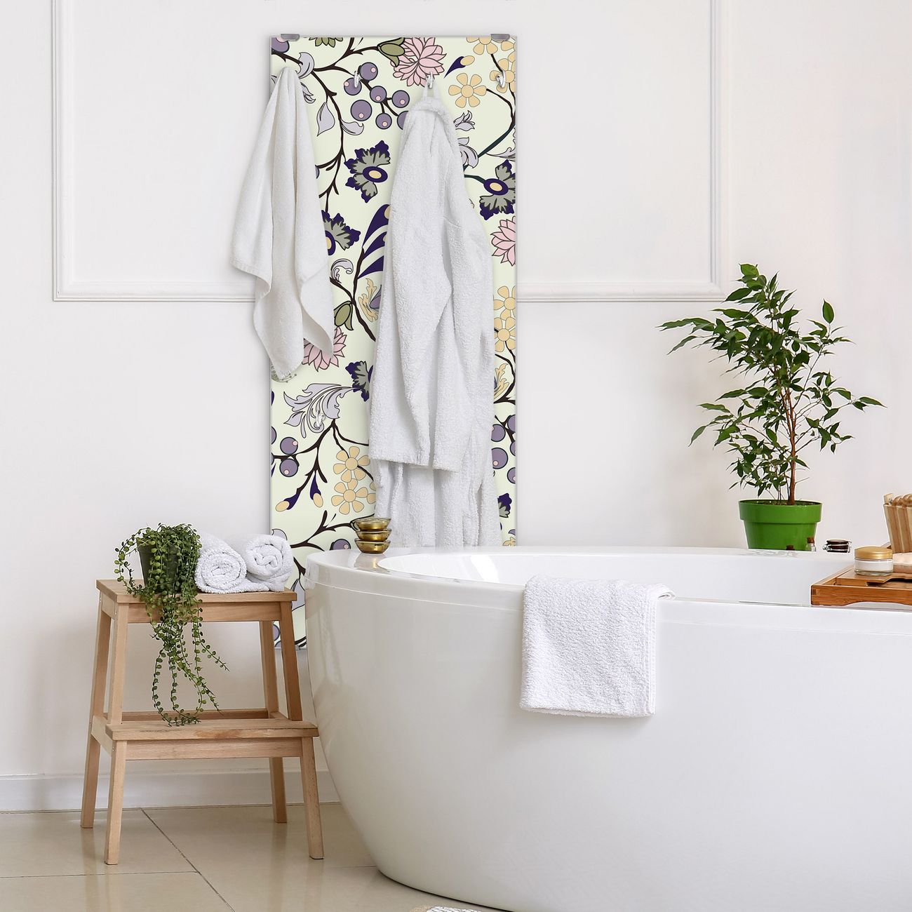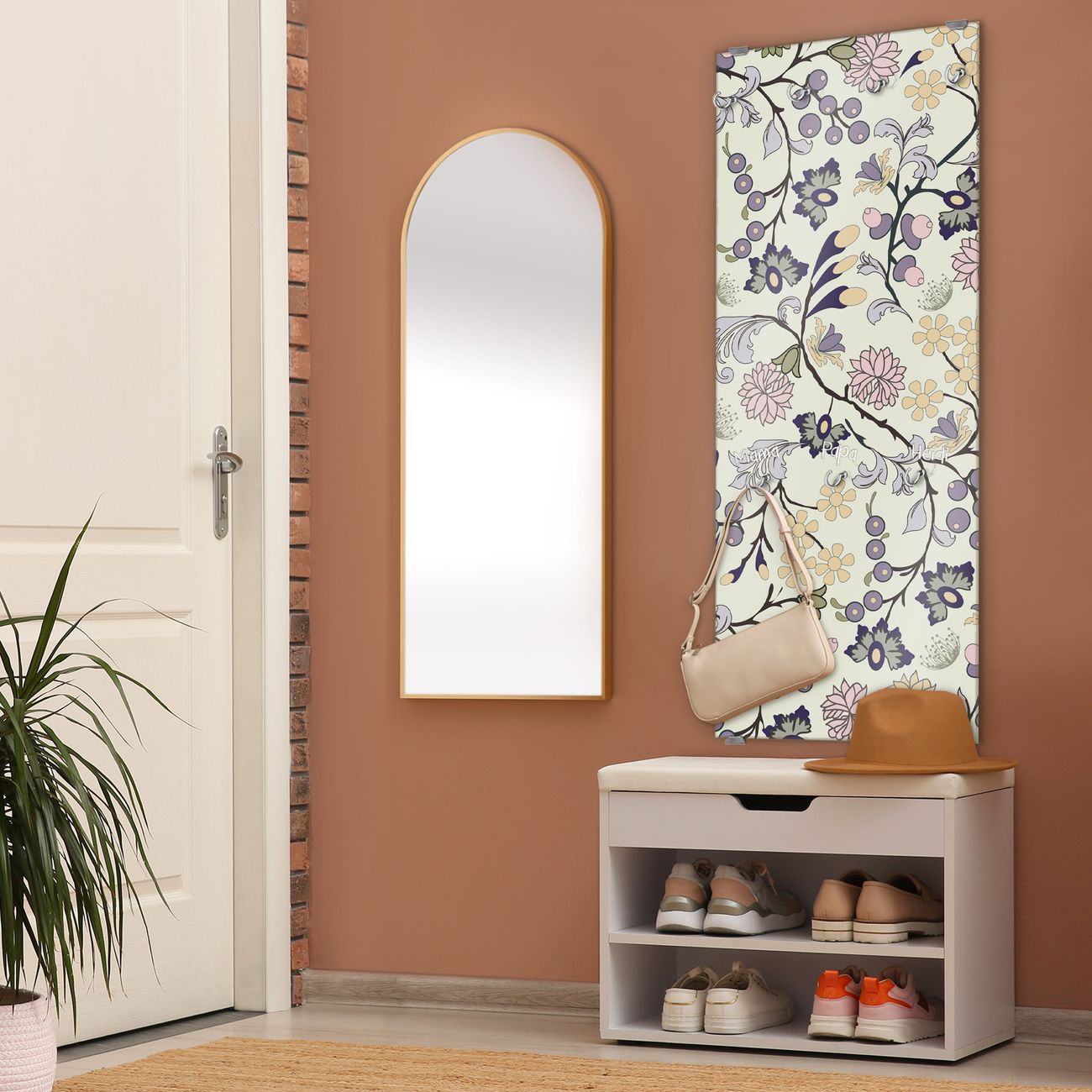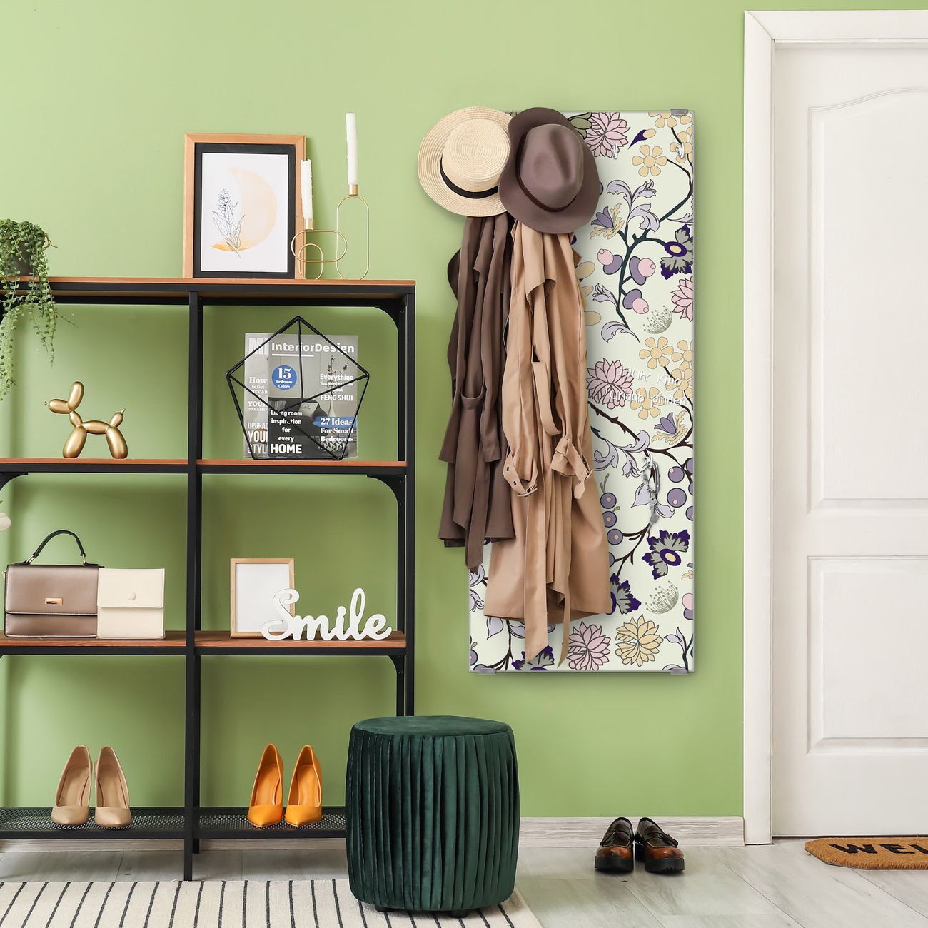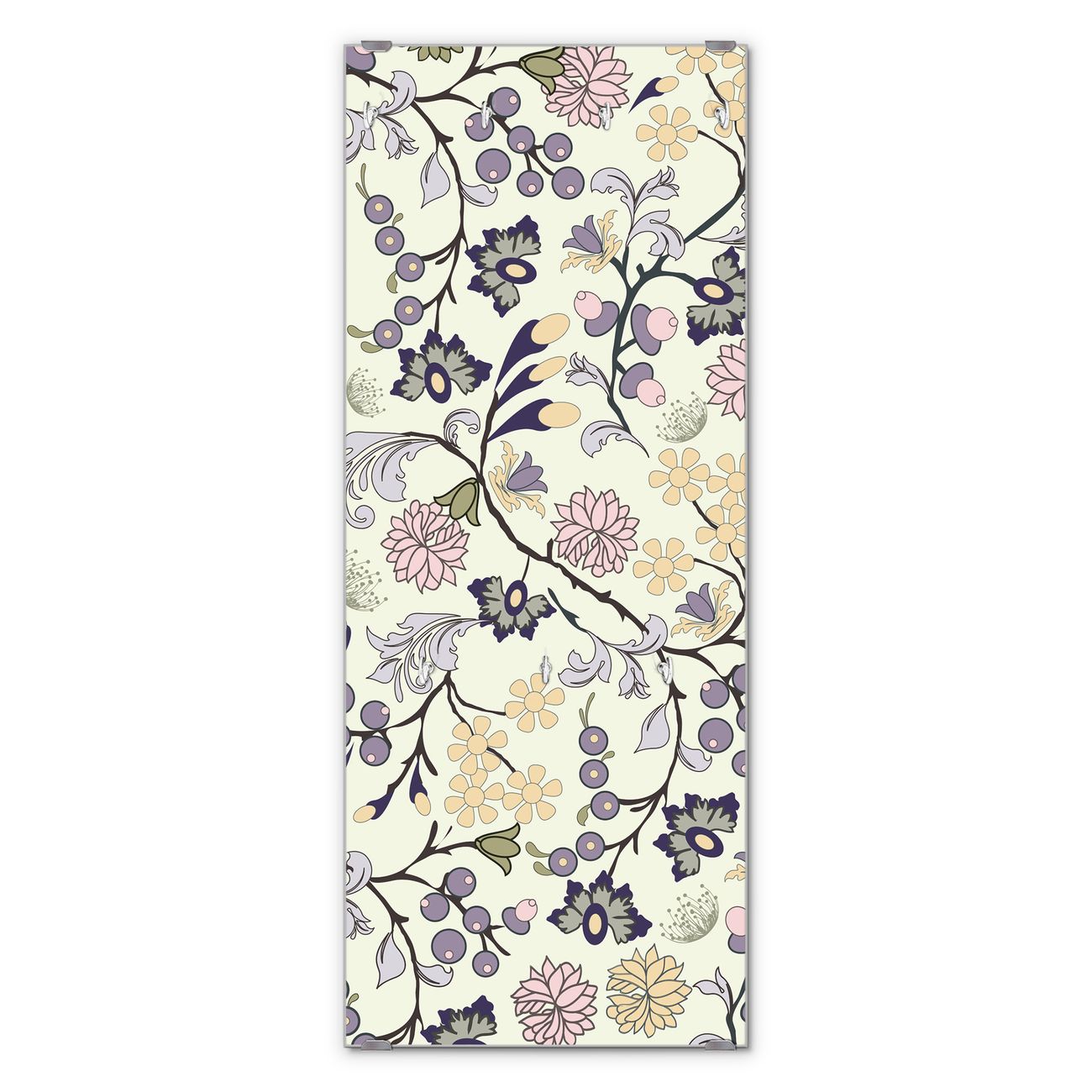 FUNKTION: Die banjado Wandgarderobe mit Motiv Florale Tapete ist Ihr täglicher Begleiter. Zuverlässig hängen hier Ihre Jacken und Mäntel griffbereit. Das Echtglas ist Ihr Paneel auch beschreibbar und wieder abwischbar. DESIGN: Sie erhalten eine Garderobenleiste aus elegantem Echtglas mit dem Farbbrillanten Motiv Florale Tapete hinterklebt. Das Design ist zeitlos klassisch, ohne dabei auf Funktionalität zu verzichten. Suchen Sie aus einer Vielzahl von Motiven das für Ihre Einrichtung Passende aus. DETAILS: Die Flurgarderobe besteht aus 4mm gehärtetem Sicherheitsglas. Sie ist 50cm breit, 125cm hoch und 6cm tief. Die Garderobenhaken zur Selbstmontage präsentieren sich in Edelstahl-Optik, ebenso die Abstandshalter für die Wandmontage. Ihre neue Garderobe ist sofort einsatzbereit. NUTZEN: Ihre neue Garderobe hält nicht nur zuverlässig Ihre Kleidung, sie ist auch optisch ein Blickfang. Durch das Glas können Sie an der Garderobe mit wasserlöslichen Kreidestiften oder Whiteboard-Markern auch Nachrichten hinterlassen. BANJADO: Wir sind ein kleines kreatives Team aus Sachsen und entwickeln Produkte die Design und Funktionalität verbinden sollen. Viel Freude mit Ihrer neuen Garderobe wünscht das banjado-Team!