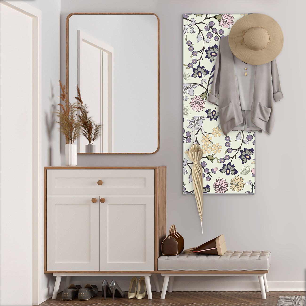 Flurgarderobe Glas 50x125cm Motiv Florale Tapete