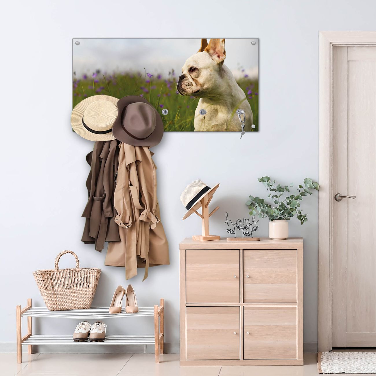 Wandgarderobe Glas 80x40cm Motiv Französische Bulldogge