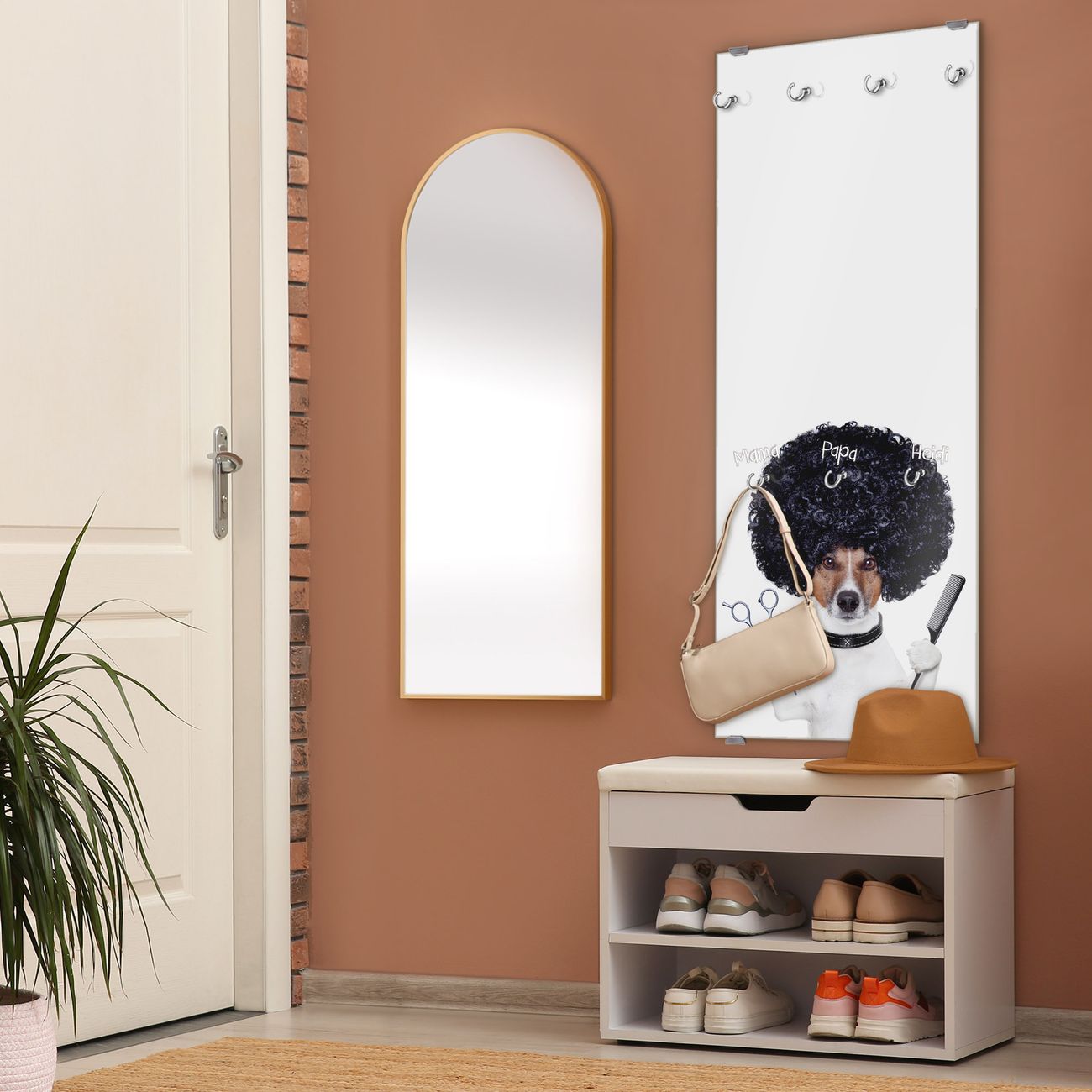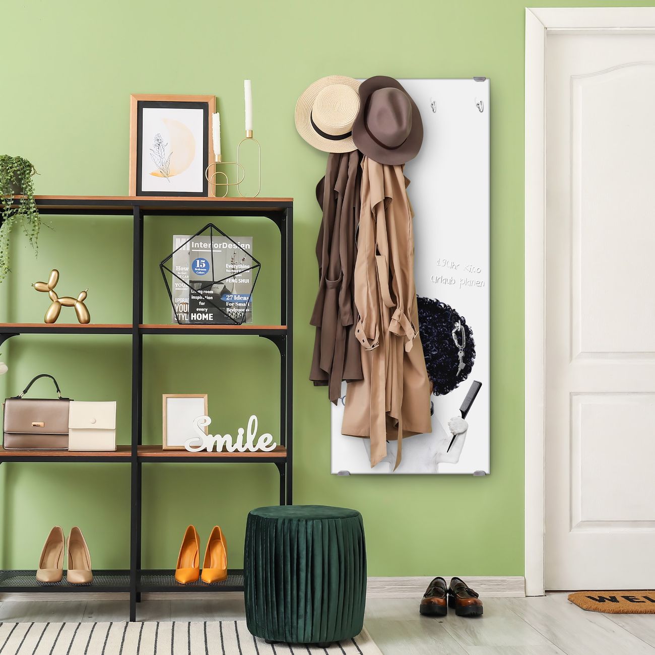FUNKTION: Die banjado Wandgarderobe mit Motiv Friseur Jack Russel ist Ihr täglicher Begleiter. Zuverlässig hängen hier Ihre Jacken und Mäntel griffbereit. Das Echtglas ist Ihr Paneel auch beschreibbar und wieder abwischbar. DESIGN: Sie erhalten eine Garderobenleiste aus elegantem Echtglas mit dem Farbbrillanten Motiv Friseur Jack Russel hinterklebt. Das Design ist zeitlos klassisch, ohne dabei auf Funktionalität zu verzichten. Suchen Sie aus einer Vielzahl von Motiven das für Ihre Einrichtung Passende aus. DETAILS: Die Flurgarderobe besteht aus 4mm gehärtetem Sicherheitsglas. Sie ist 50cm breit, 125cm hoch und 6cm tief. Die Garderobenhaken zur Selbstmontage präsentieren sich in Edelstahl-Optik, ebenso die Abstandshalter für die Wandmontage. Ihre neue Garderobe ist sofort einsatzbereit. NUTZEN: Ihre neue Garderobe hält nicht nur zuverlässig Ihre Kleidung, sie ist auch optisch ein Blickfang. Durch das Glas können Sie an der Garderobe mit wasserlöslichen Kreidestiften oder Whiteboard-Markern auch Nachrichten hinterlassen. BANJADO: Wir sind ein kleines kreatives Team aus Sachsen und entwickeln Produkte die Design und Funktionalität verbinden sollen. Viel Freude mit Ihrer neuen Garderobe wünscht das banjado-Team!
