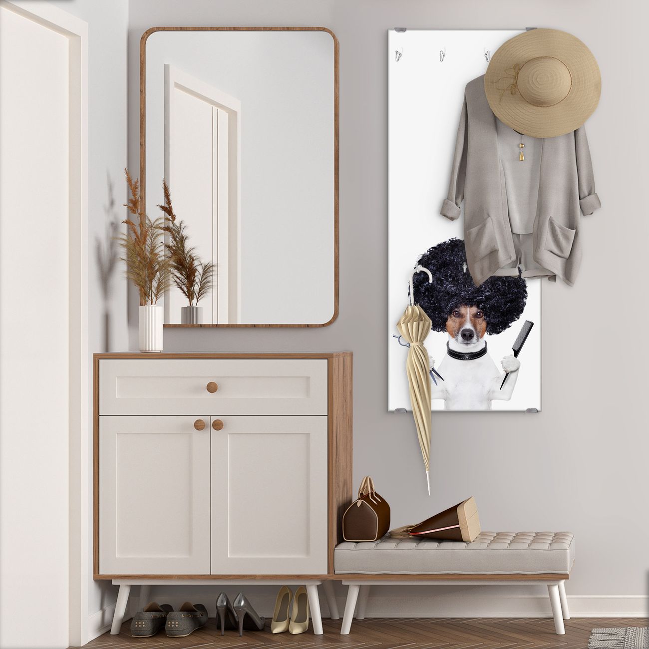 Flurgarderobe Glas 50x125cm Motiv Friseur Jack Russel