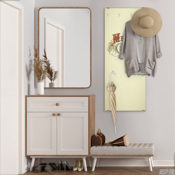 FUNKTION: Die banjado Wandgarderobe mit Motiv Frohes Fest ist Ihr täglicher Begleiter. Zuverlässig hängen hier Ihre Jacken und Mäntel griffbereit. Das Echtglas ist Ihr Paneel auch beschreibbar und wieder abwischbar. DESIGN: Sie erhalten eine Garderobenleiste aus elegantem Echtglas mit dem Farbbrillanten Motiv Frohes Fest hinterklebt. Das Design ist zeitlos klassisch, ohne dabei auf Funktionalität zu verzichten. Suchen Sie aus einer Vielzahl von Motiven das für Ihre Einrichtung Passende aus. DETAILS: Die Flurgarderobe besteht aus 4mm gehärtetem Sicherheitsglas. Sie ist 50cm breit, 125cm hoch und 6cm tief. Die Garderobenhaken zur Selbstmontage präsentieren sich in Edelstahl-Optik, ebenso die Abstandshalter für die Wandmontage. Ihre neue Garderobe ist sofort einsatzbereit. NUTZEN: Ihre neue Garderobe hält nicht nur zuverlässig Ihre Kleidung, sie ist auch optisch ein Blickfang. Durch das Glas können Sie an der Garderobe mit wasserlöslichen Kreidestiften oder Whiteboard-Markern auch Nachrichten hinterlassen. BANJADO: Wir sind ein kleines kreatives Team aus Sachsen und entwickeln Produkte die Design und Funktionalität verbinden sollen. Viel Freude mit Ihrer neuen Garderobe wünscht das banjado-Team!