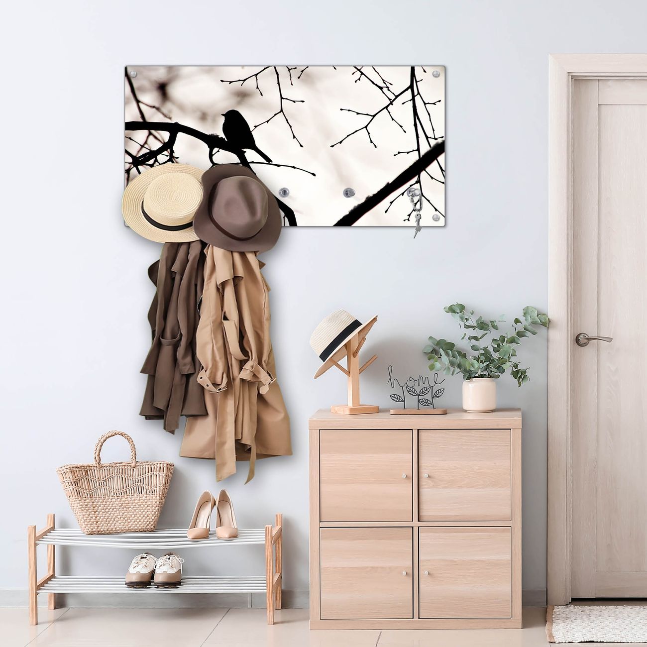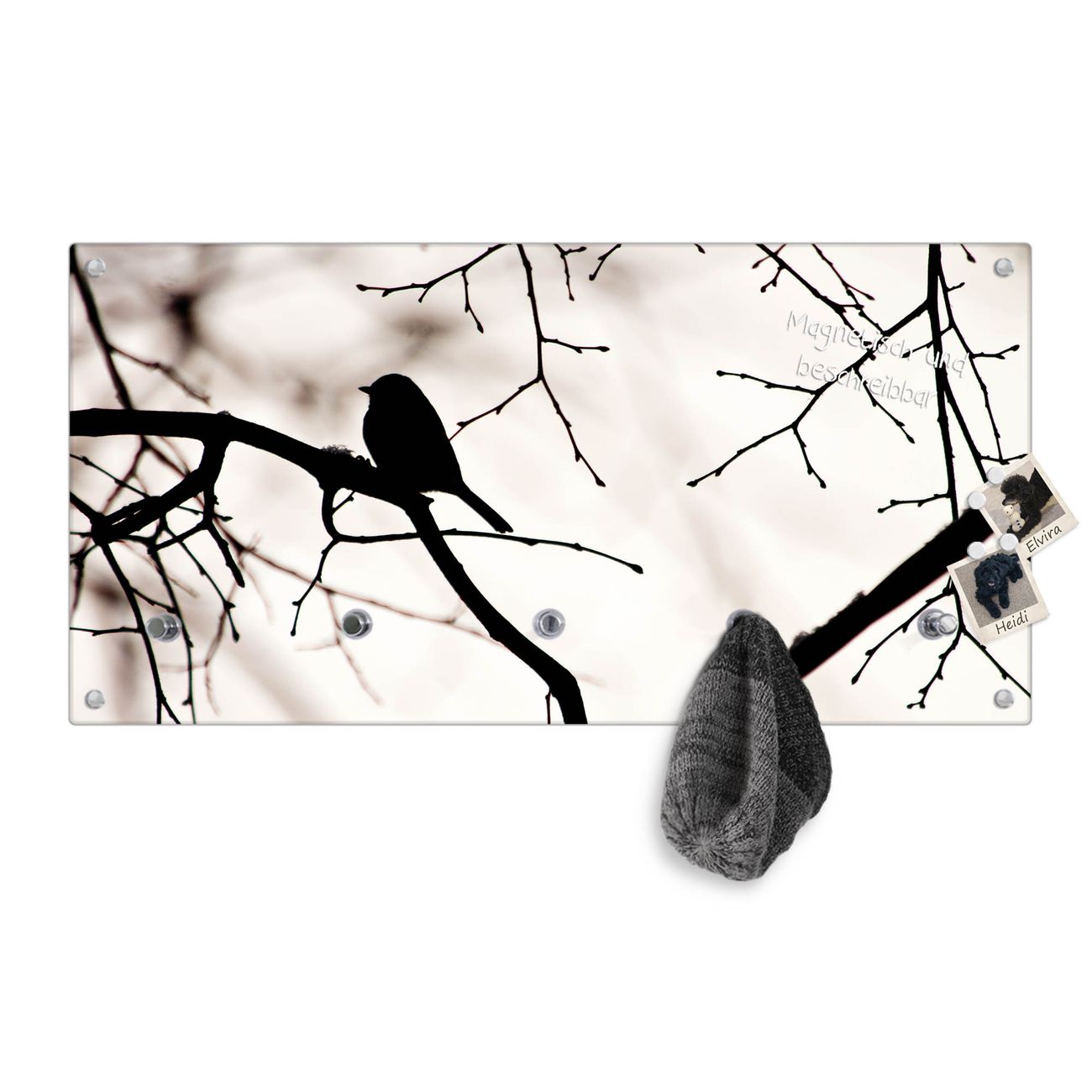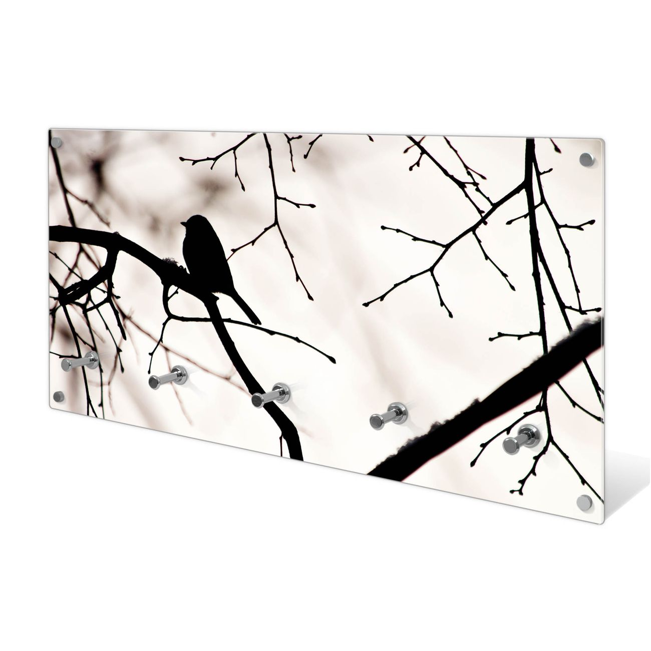 Wandgarderobe Glas 80x40cm Motiv Früher Vogel