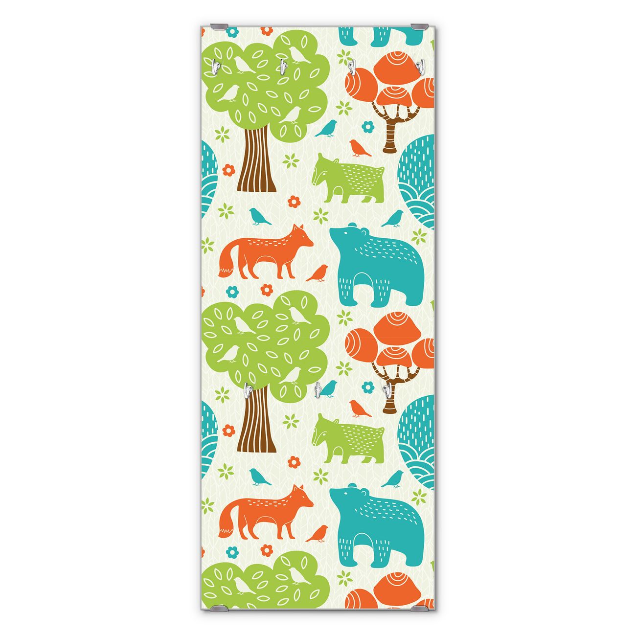 Flurgarderobe Glas 50x125cm Motiv Fuchs Bär Wald