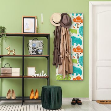 FUNKTION: Die banjado Wandgarderobe mit Motiv Fuchs Bär Wald ist Ihr täglicher Begleiter. Zuverlässig hängen hier Ihre Jacken und Mäntel griffbereit. Das Echtglas ist Ihr Paneel auch beschreibbar und wieder abwischbar. DESIGN: Sie erhalten eine Garderobenleiste aus elegantem Echtglas mit dem Farbbrillanten Motiv Fuchs Bär Wald hinterklebt. Das Design ist zeitlos klassisch, ohne dabei auf Funktionalität zu verzichten. Suchen Sie aus einer Vielzahl von Motiven das für Ihre Einrichtung Passende aus. DETAILS: Die Flurgarderobe besteht aus 4mm gehärtetem Sicherheitsglas. Sie ist 50cm breit, 125cm hoch und 6cm tief. Die Garderobenhaken zur Selbstmontage präsentieren sich in Edelstahl-Optik, ebenso die Abstandshalter für die Wandmontage. Ihre neue Garderobe ist sofort einsatzbereit. NUTZEN: Ihre neue Garderobe hält nicht nur zuverlässig Ihre Kleidung, sie ist auch optisch ein Blickfang. Durch das Glas können Sie an der Garderobe mit wasserlöslichen Kreidestiften oder Whiteboard-Markern auch Nachrichten hinterlassen. BANJADO: Wir sind ein kleines kreatives Team aus Sachsen und entwickeln Produkte die Design und Funktionalität verbinden sollen. Viel Freude mit Ihrer neuen Garderobe wünscht das banjado-Team!