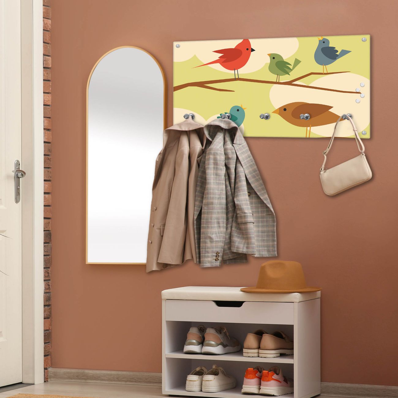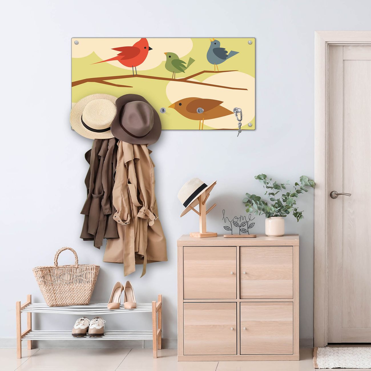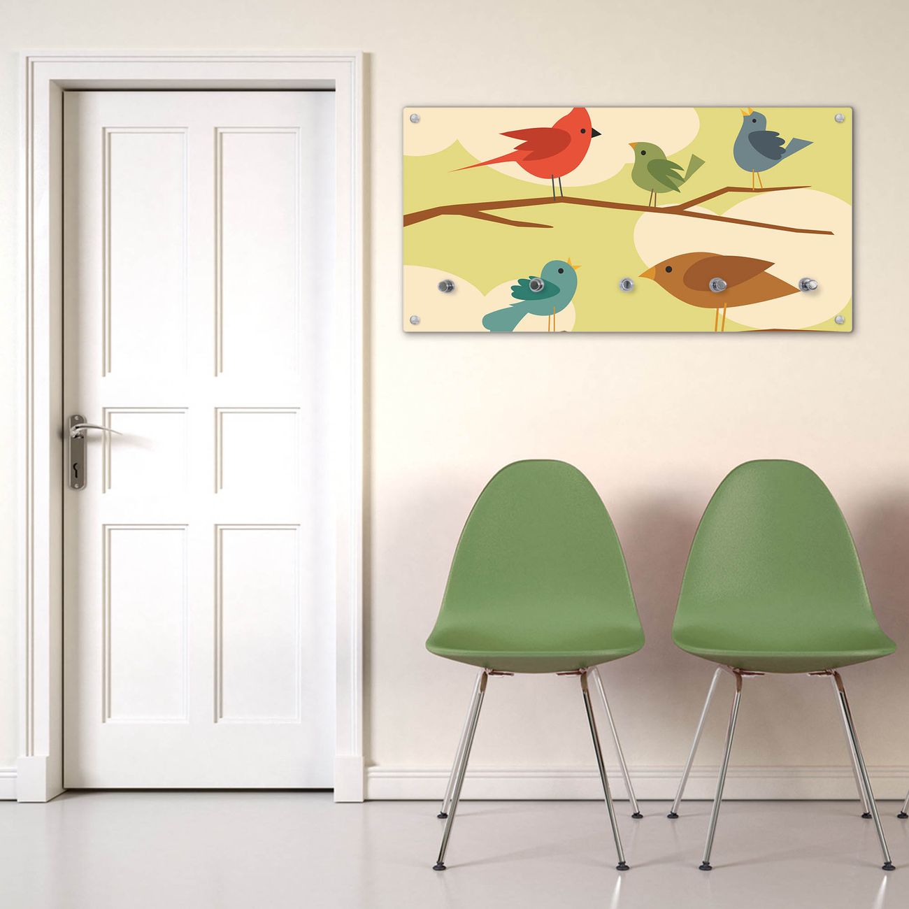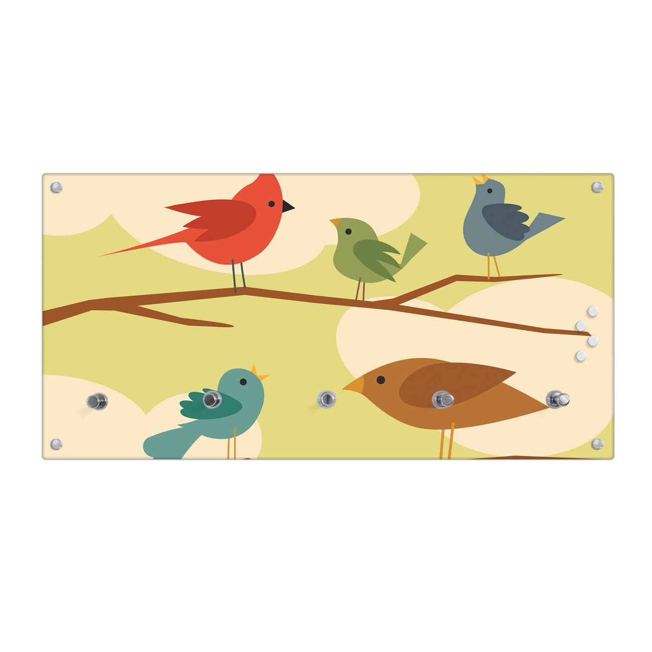 Wandgarderobe Glas 80x40cm Motiv Fünf Vögel