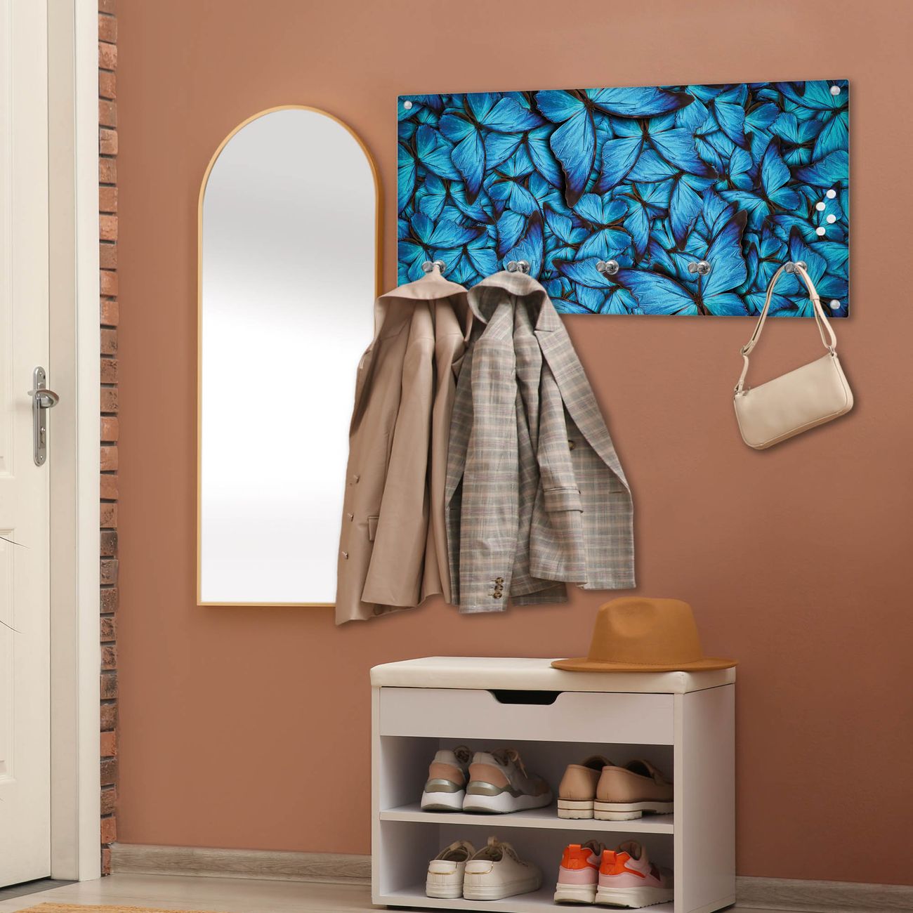 Wandgarderobe Glas 80x40cm Motiv Fürstliche Falter