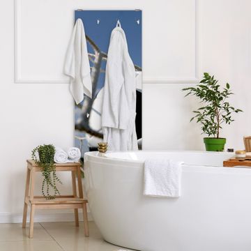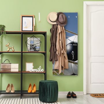 FUNKTION: Die banjado Wandgarderobe mit Motiv Fußball ist Ihr täglicher Begleiter. Zuverlässig hängen hier Ihre Jacken und Mäntel griffbereit. Das Echtglas ist Ihr Paneel auch beschreibbar und wieder abwischbar. DESIGN: Sie erhalten eine Garderobenleiste aus elegantem Echtglas mit dem Farbbrillanten Motiv Fußball hinterklebt. Das Design ist zeitlos klassisch, ohne dabei auf Funktionalität zu verzichten. Suchen Sie aus einer Vielzahl von Motiven das für Ihre Einrichtung Passende aus. DETAILS: Die Flurgarderobe besteht aus 4mm gehärtetem Sicherheitsglas. Sie ist 50cm breit, 125cm hoch und 6cm tief. Die Garderobenhaken zur Selbstmontage präsentieren sich in Edelstahl-Optik, ebenso die Abstandshalter für die Wandmontage. Ihre neue Garderobe ist sofort einsatzbereit. NUTZEN: Ihre neue Garderobe hält nicht nur zuverlässig Ihre Kleidung, sie ist auch optisch ein Blickfang. Durch das Glas können Sie an der Garderobe mit wasserlöslichen Kreidestiften oder Whiteboard-Markern auch Nachrichten hinterlassen. BANJADO: Wir sind ein kleines kreatives Team aus Sachsen und entwickeln Produkte die Design und Funktionalität verbinden sollen. Viel Freude mit Ihrer neuen Garderobe wünscht das banjado-Team!