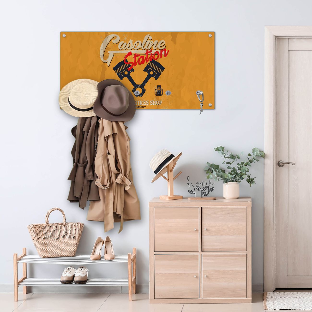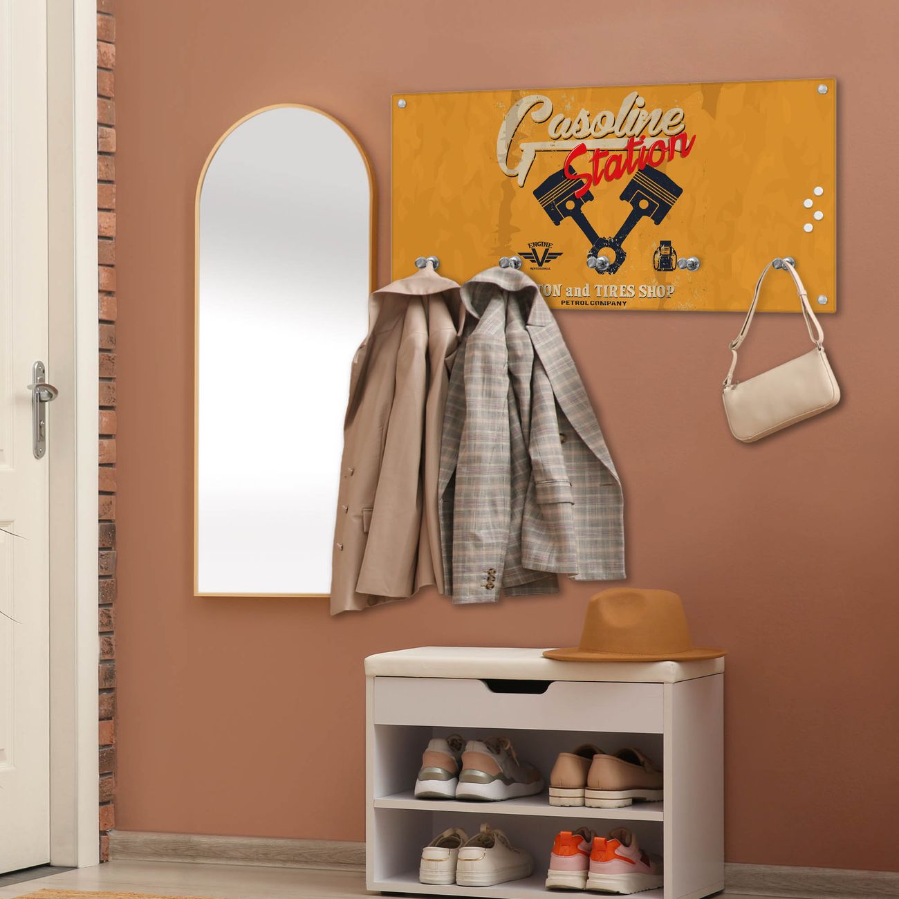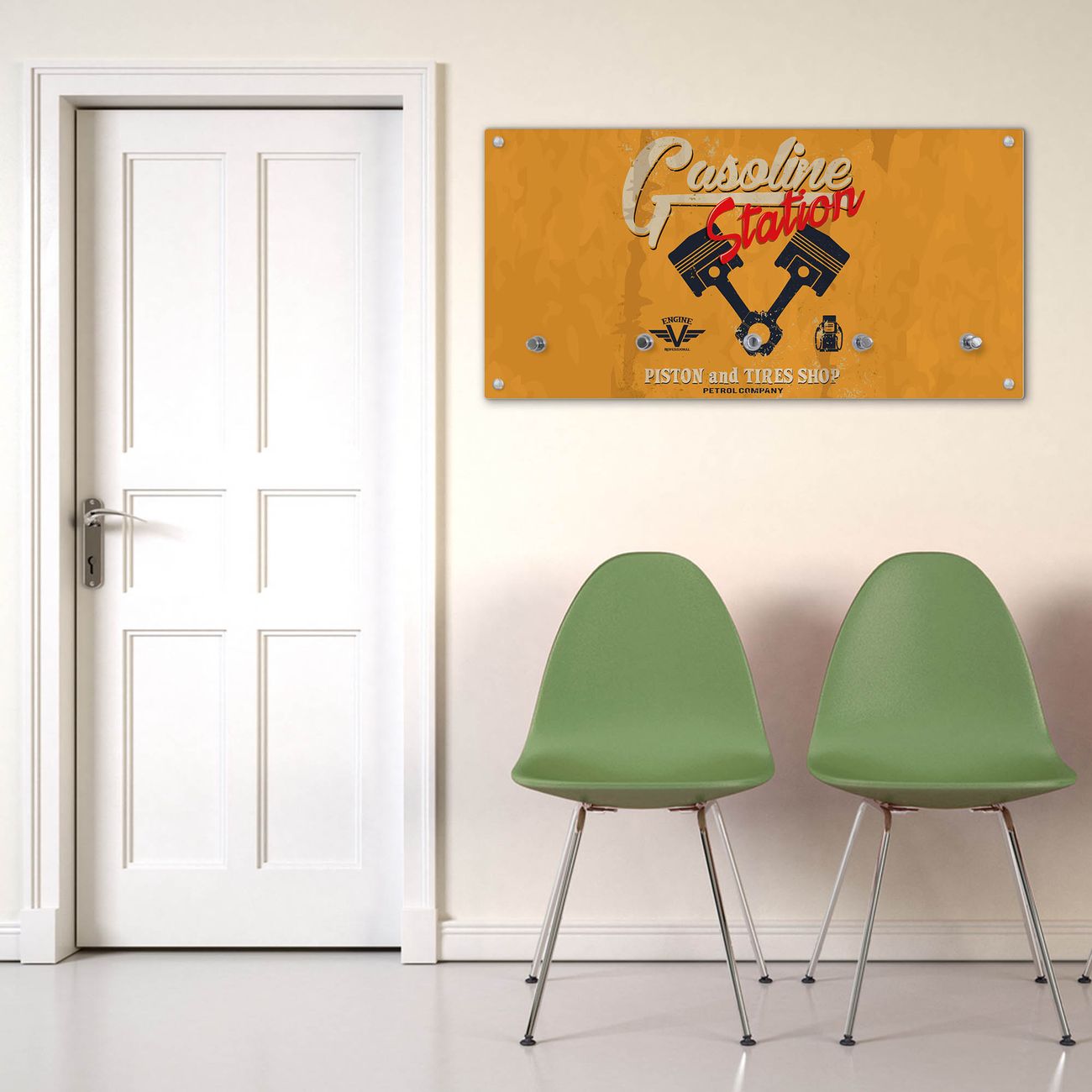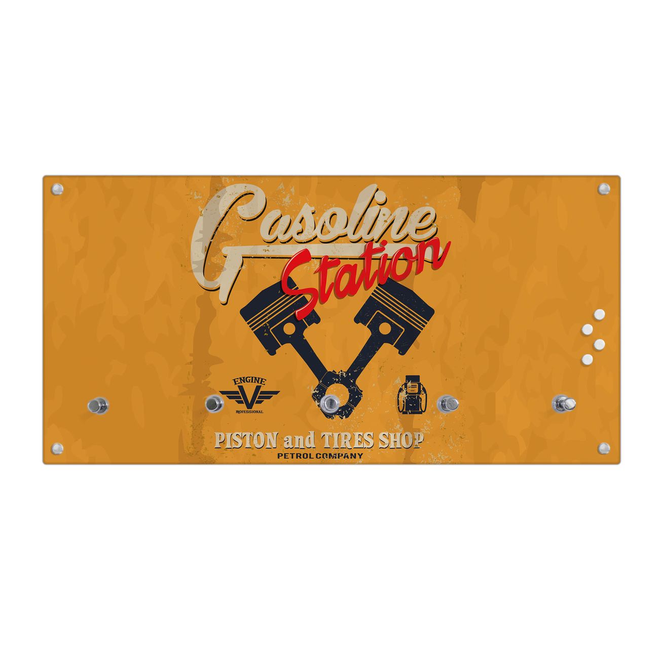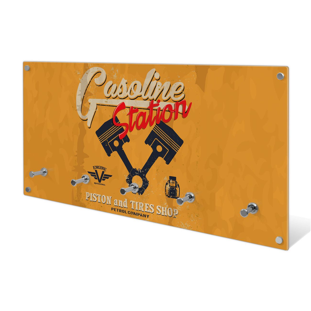 Wandgarderobe Glas 80x40cm Motiv Gasoline Station