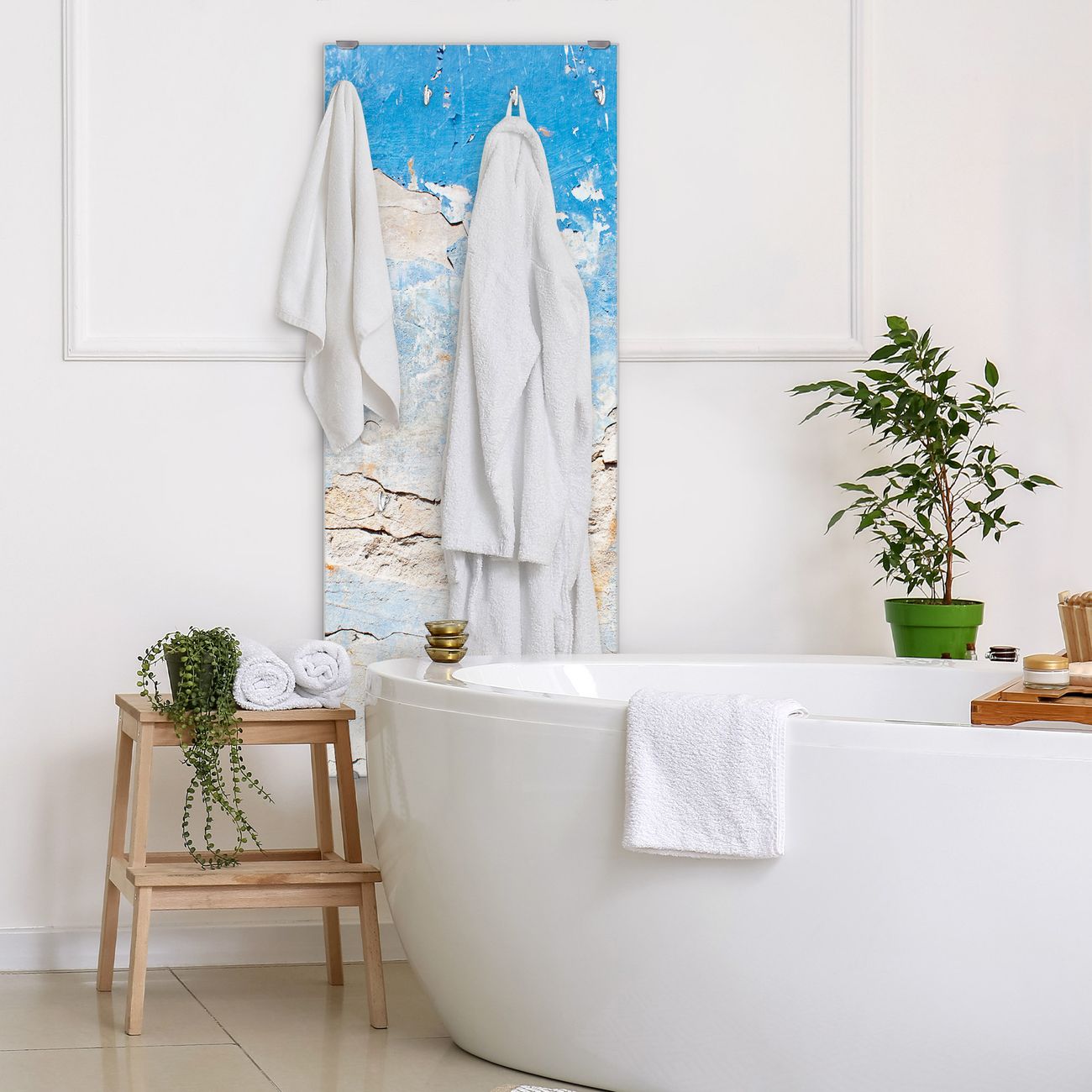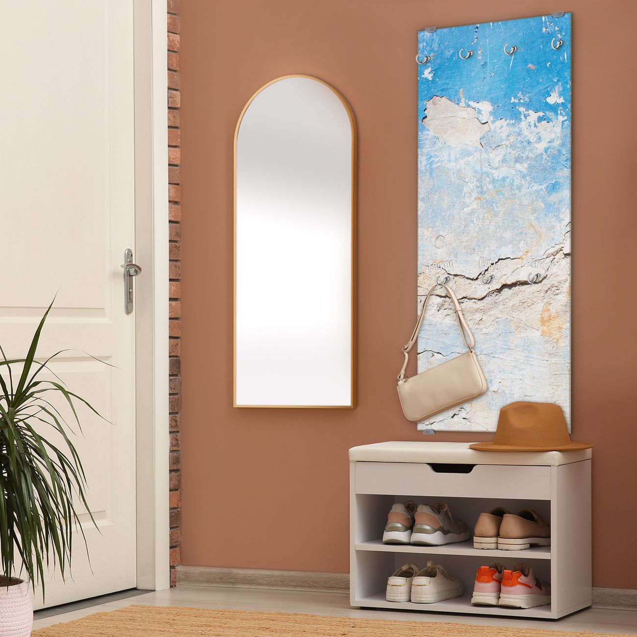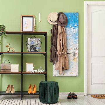 FUNKTION: Die banjado Wandgarderobe mit Motiv Gebrochene Wand ist Ihr täglicher Begleiter. Zuverlässig hängen hier Ihre Jacken und Mäntel griffbereit. Das Echtglas ist Ihr Paneel auch beschreibbar und wieder abwischbar. DESIGN: Sie erhalten eine Garderobenleiste aus elegantem Echtglas mit dem Farbbrillanten Motiv Gebrochene Wand hinterklebt. Das Design ist zeitlos klassisch, ohne dabei auf Funktionalität zu verzichten. Suchen Sie aus einer Vielzahl von Motiven das für Ihre Einrichtung Passende aus. DETAILS: Die Flurgarderobe besteht aus 4mm gehärtetem Sicherheitsglas. Sie ist 50cm breit, 125cm hoch und 6cm tief. Die Garderobenhaken zur Selbstmontage präsentieren sich in Edelstahl-Optik, ebenso die Abstandshalter für die Wandmontage. Ihre neue Garderobe ist sofort einsatzbereit. NUTZEN: Ihre neue Garderobe hält nicht nur zuverlässig Ihre Kleidung, sie ist auch optisch ein Blickfang. Durch das Glas können Sie an der Garderobe mit wasserlöslichen Kreidestiften oder Whiteboard-Markern auch Nachrichten hinterlassen. BANJADO: Wir sind ein kleines kreatives Team aus Sachsen und entwickeln Produkte die Design und Funktionalität verbinden sollen. Viel Freude mit Ihrer neuen Garderobe wünscht das banjado-Team!