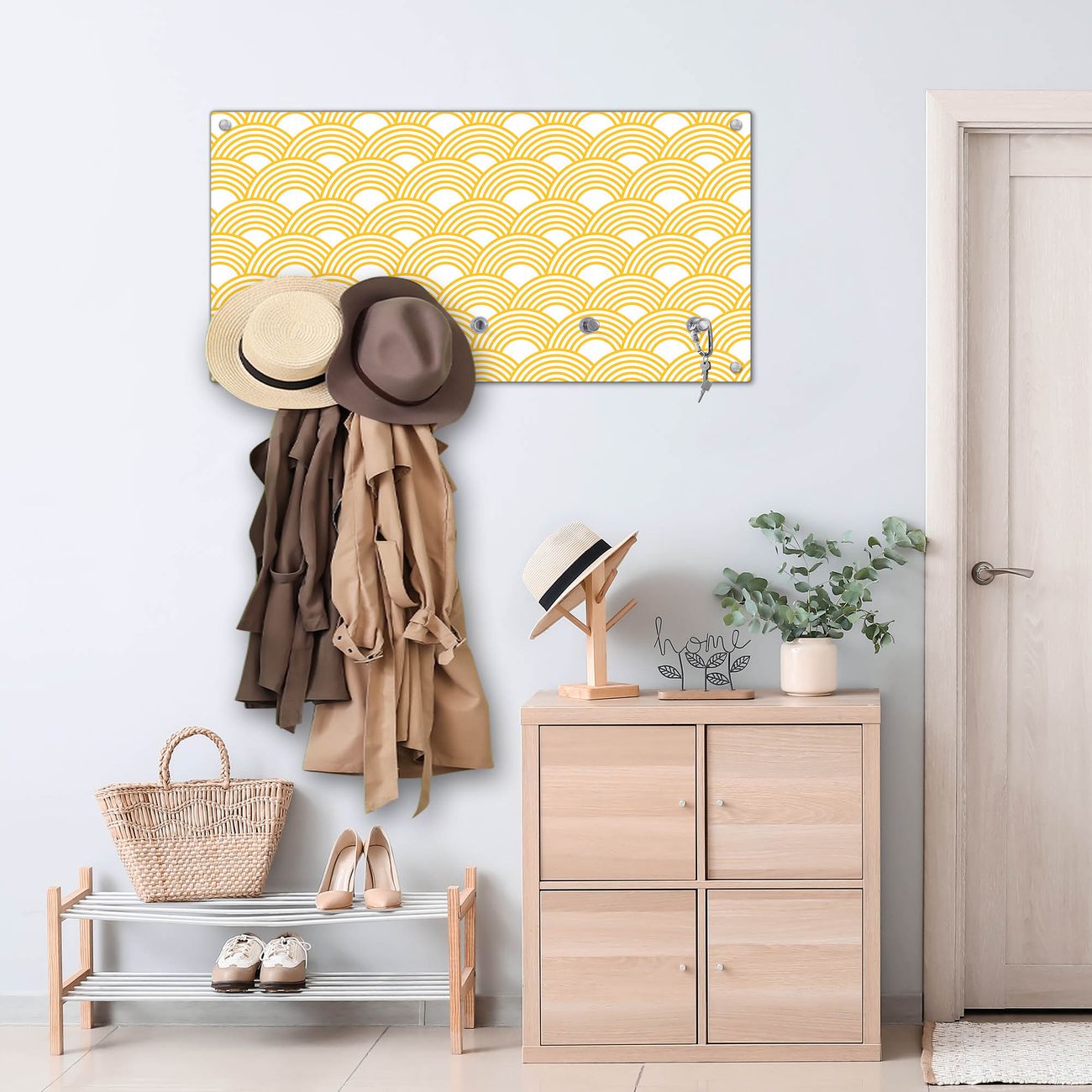 Wandgarderobe Glas 80x40cm Motiv Gelbe Wellen