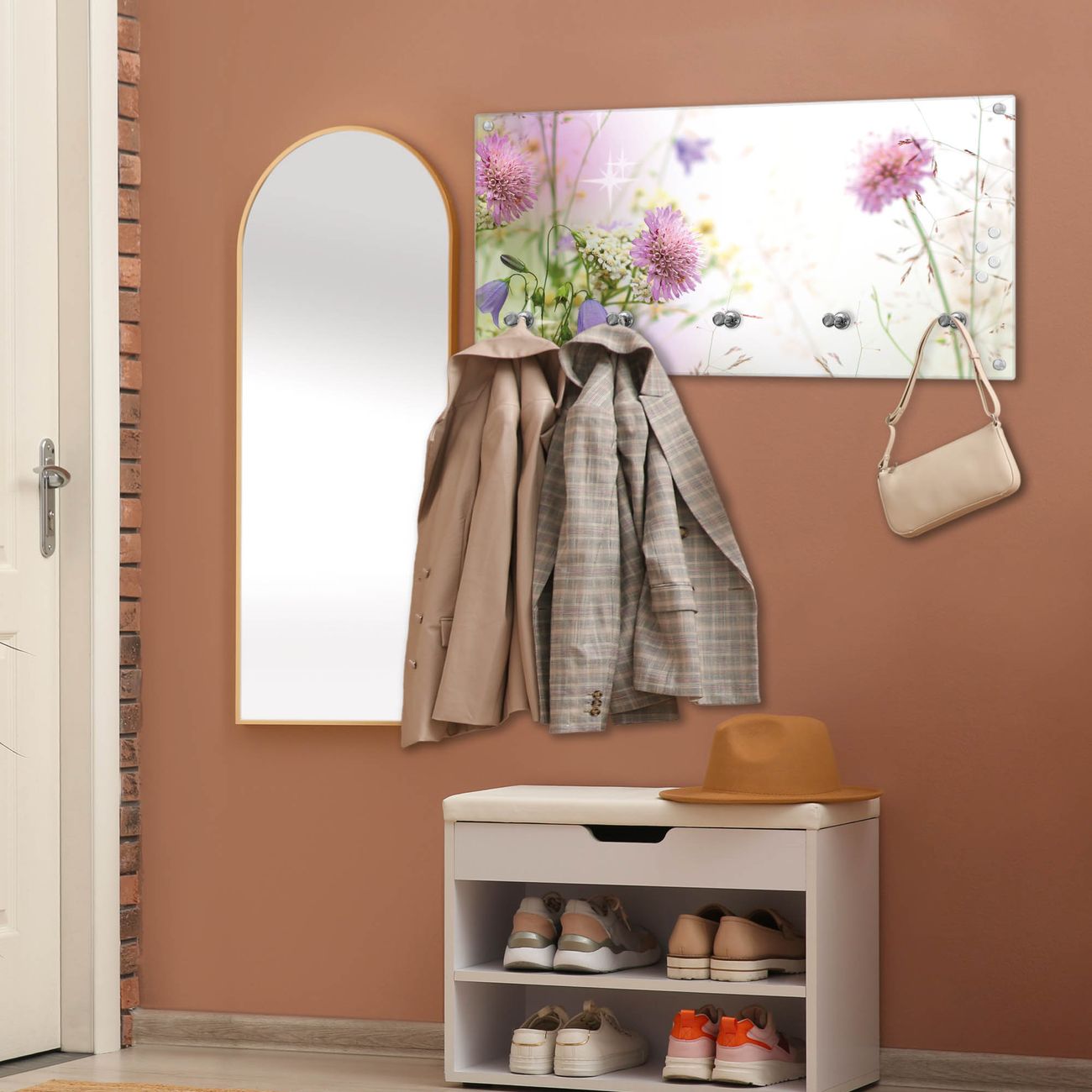 Wandgarderobe Glas 80x40cm Motiv Glitzernde Wiese