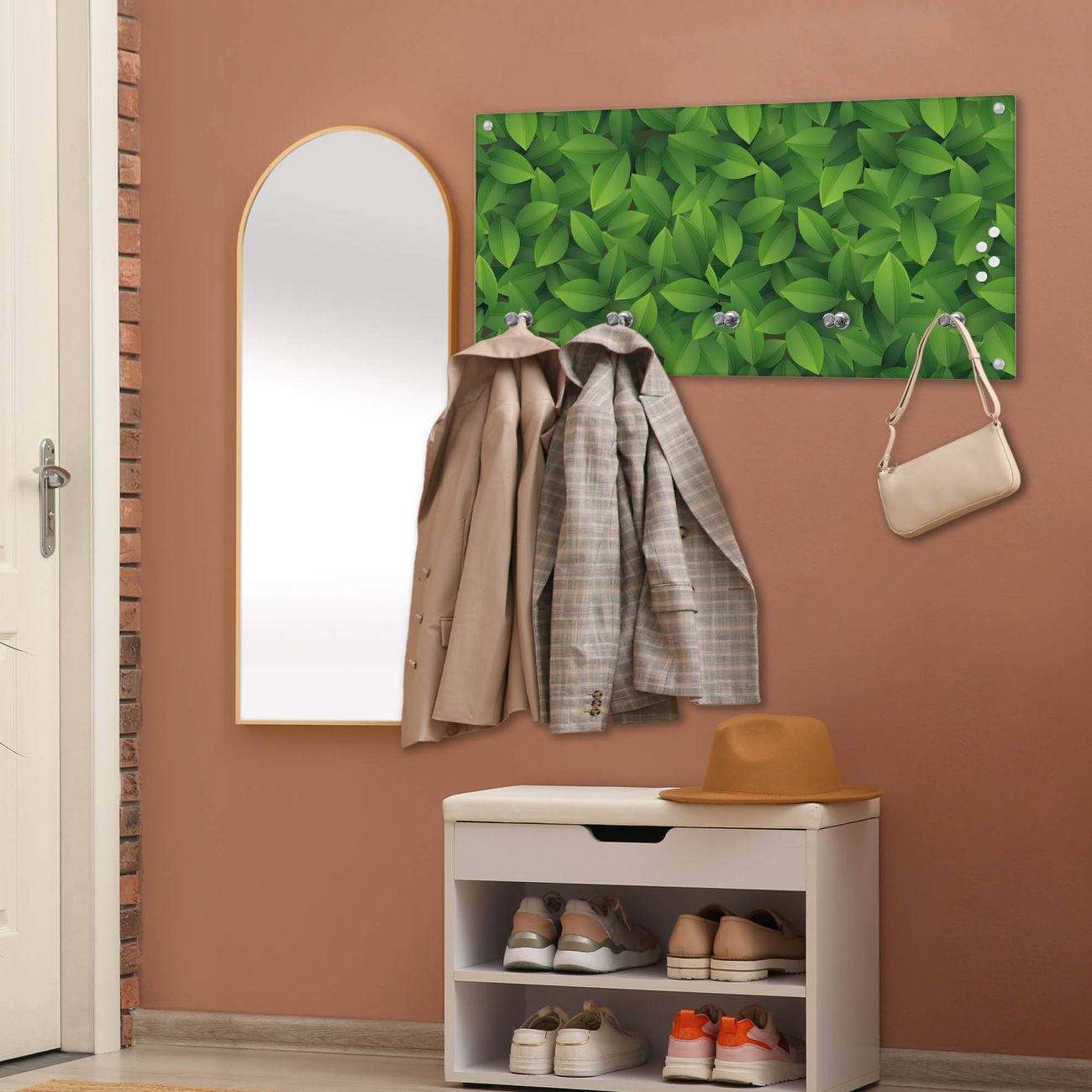 Wandgarderobe Glas 80x40cm Motiv Grüne Blätter