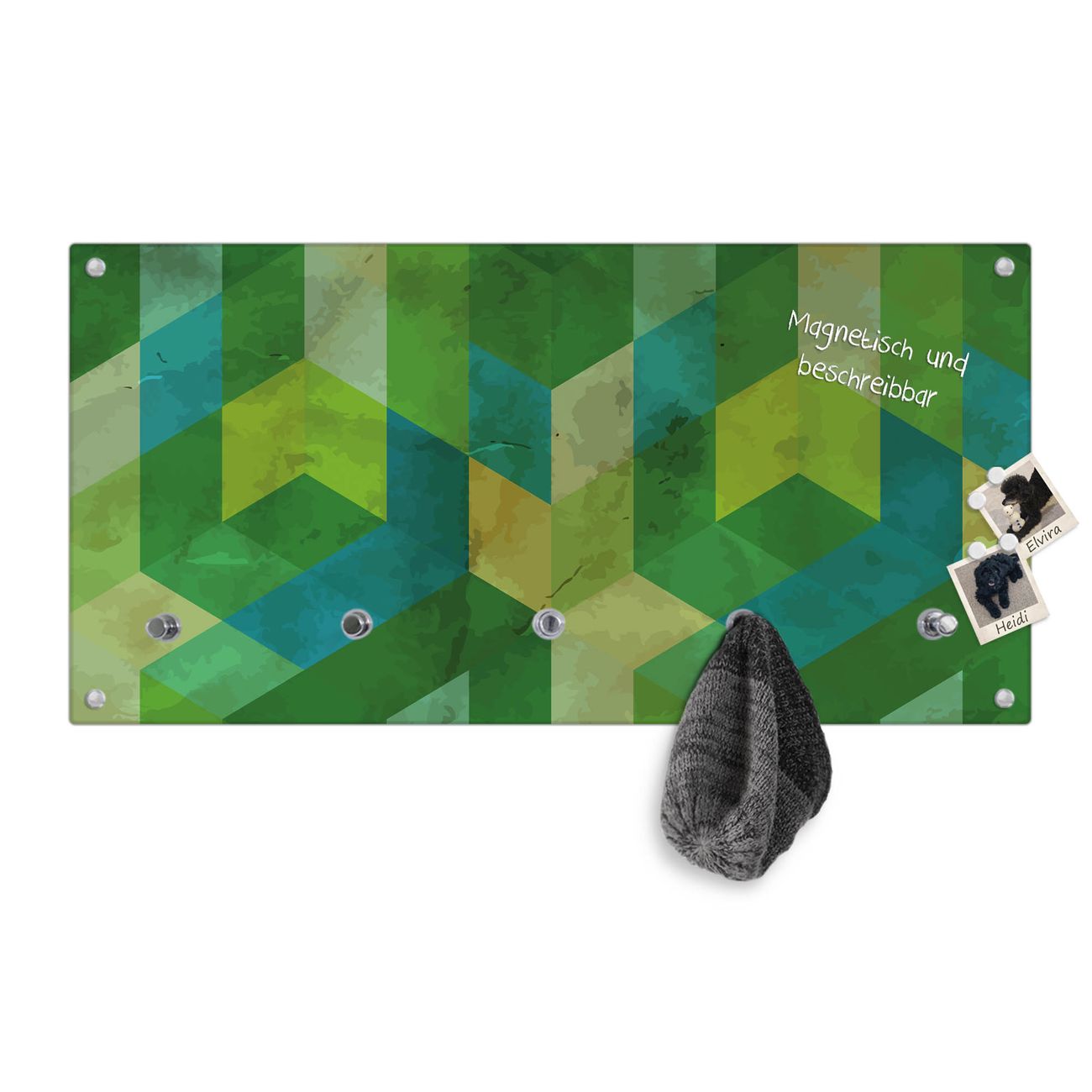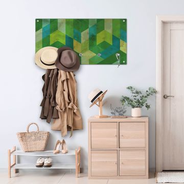 Wandgarderobe Glas 80x40cm Motiv Grüne Würfel