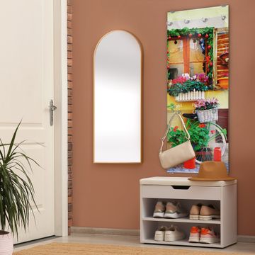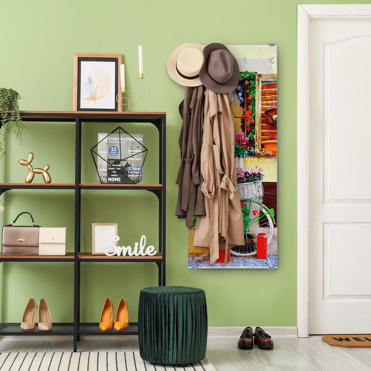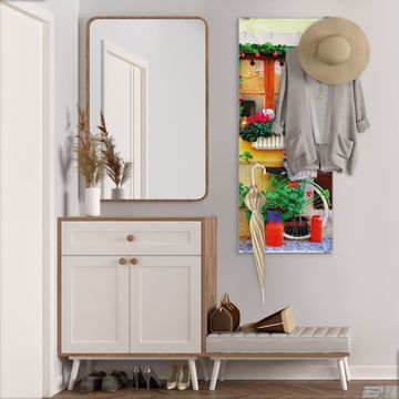 FUNKTION: Die banjado Wandgarderobe mit Motiv Grünes Fahrrad ist Ihr täglicher Begleiter. Zuverlässig hängen hier Ihre Jacken und Mäntel griffbereit. Das Echtglas ist Ihr Paneel auch beschreibbar und wieder abwischbar. DESIGN: Sie erhalten eine Garderobenleiste aus elegantem Echtglas mit dem Farbbrillanten Motiv Grünes Fahrrad hinterklebt. Das Design ist zeitlos klassisch, ohne dabei auf Funktionalität zu verzichten. Suchen Sie aus einer Vielzahl von Motiven das für Ihre Einrichtung Passende aus. DETAILS: Die Flurgarderobe besteht aus 4mm gehärtetem Sicherheitsglas. Sie ist 50cm breit, 125cm hoch und 6cm tief. Die Garderobenhaken zur Selbstmontage präsentieren sich in Edelstahl-Optik, ebenso die Abstandshalter für die Wandmontage. Ihre neue Garderobe ist sofort einsatzbereit. NUTZEN: Ihre neue Garderobe hält nicht nur zuverlässig Ihre Kleidung, sie ist auch optisch ein Blickfang. Durch das Glas können Sie an der Garderobe mit wasserlöslichen Kreidestiften oder Whiteboard-Markern auch Nachrichten hinterlassen. BANJADO: Wir sind ein kleines kreatives Team aus Sachsen und entwickeln Produkte die Design und Funktionalität verbinden sollen. Viel Freude mit Ihrer neuen Garderobe wünscht das banjado-Team!