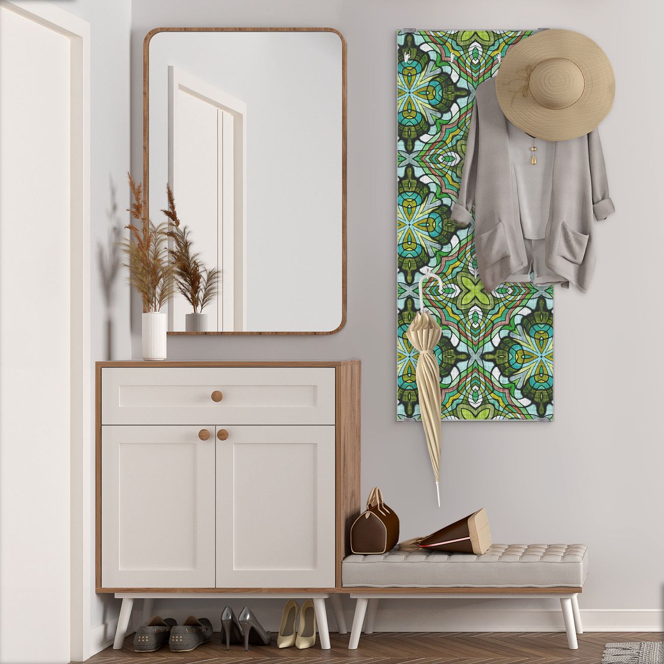 Flurgarderobe Glas 50x125cm Motiv Grünes Muster
