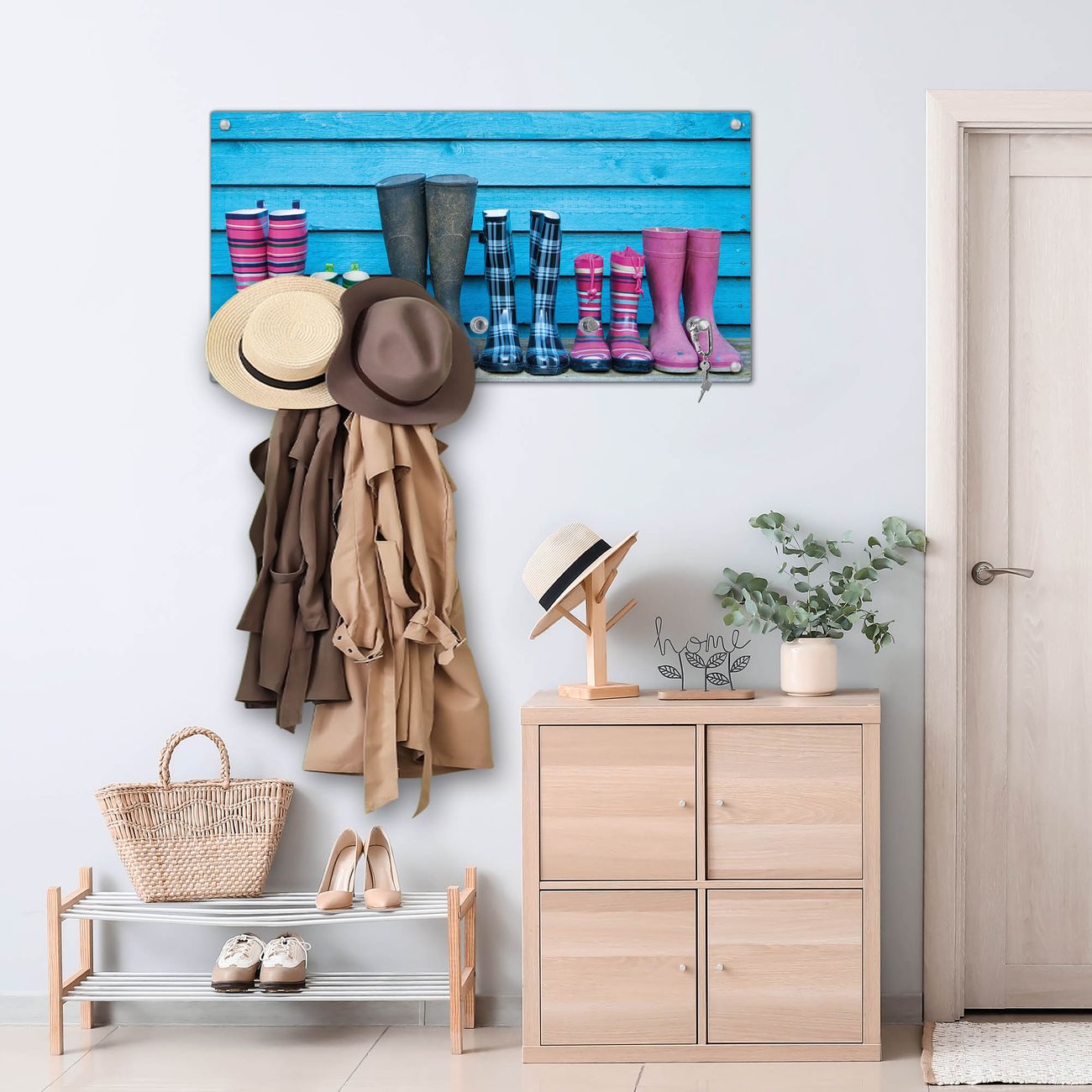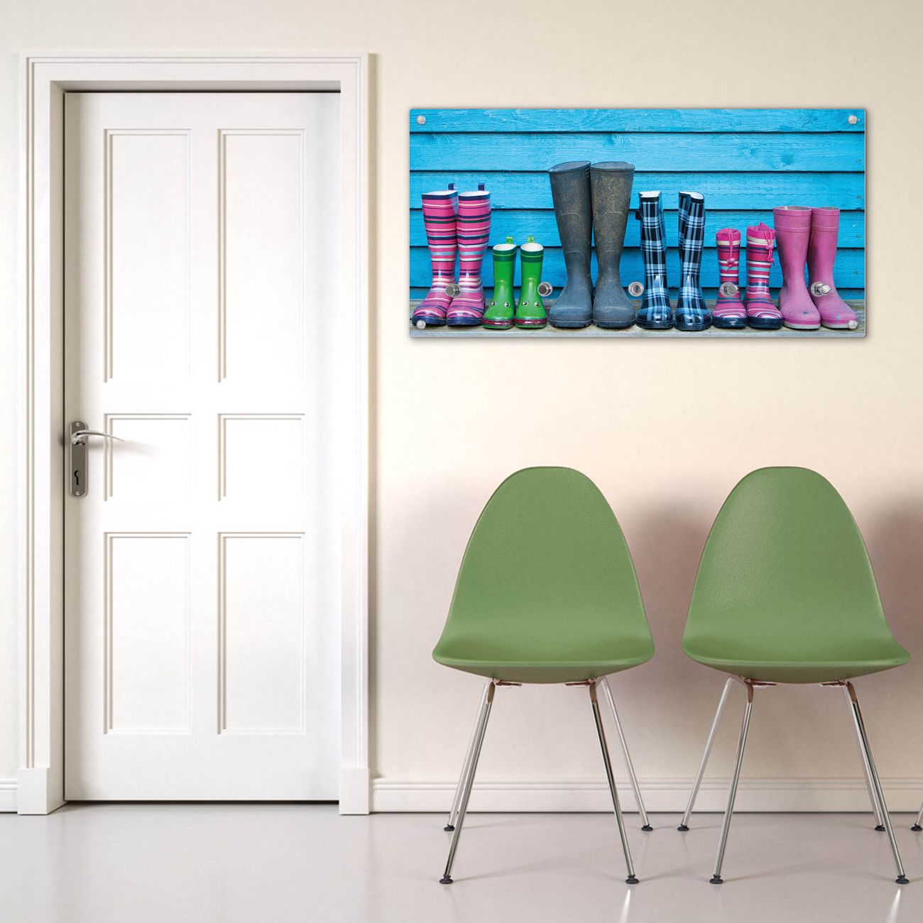 Wandgarderobe Glas 80x40cm Motiv Gummistiefel