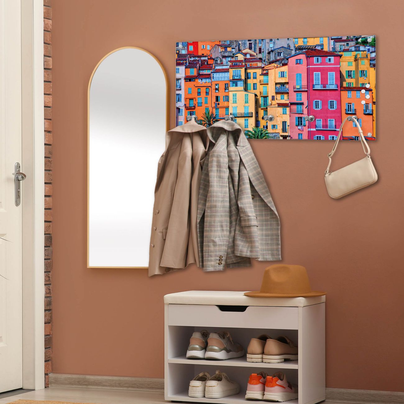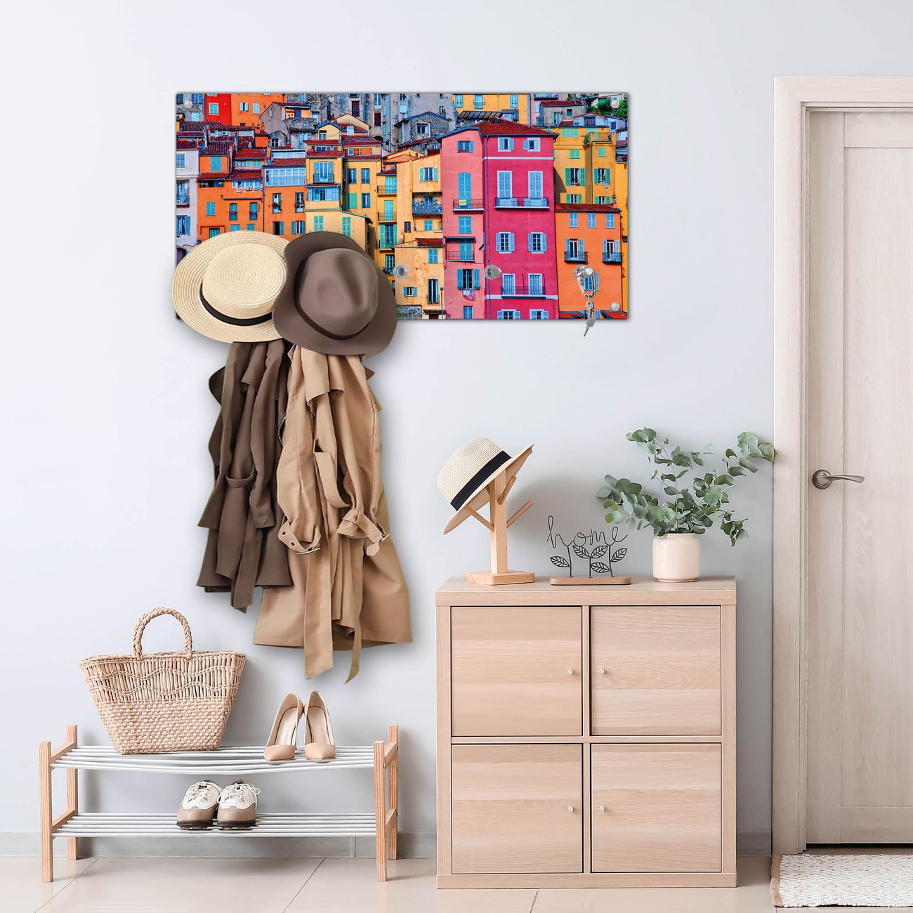 Wandgarderobe Glas 80x40cm Motiv Häuserberg