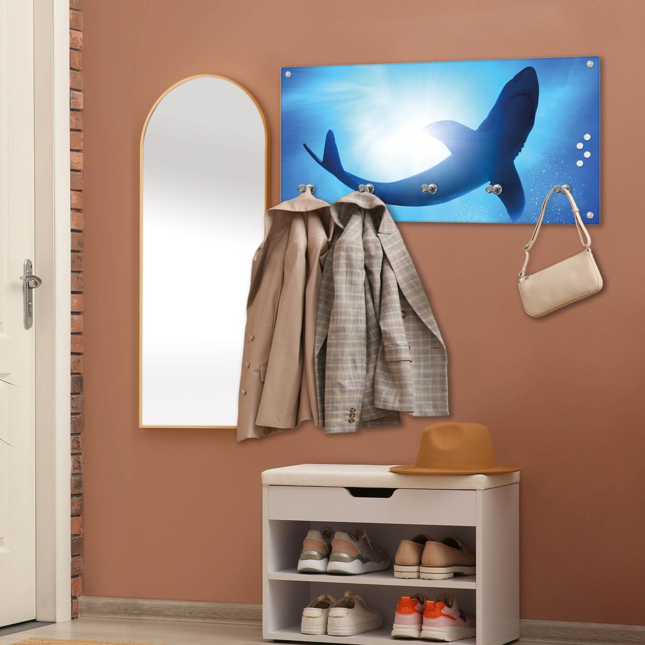 Wandgarderobe Glas 80x40cm Motiv Hai
