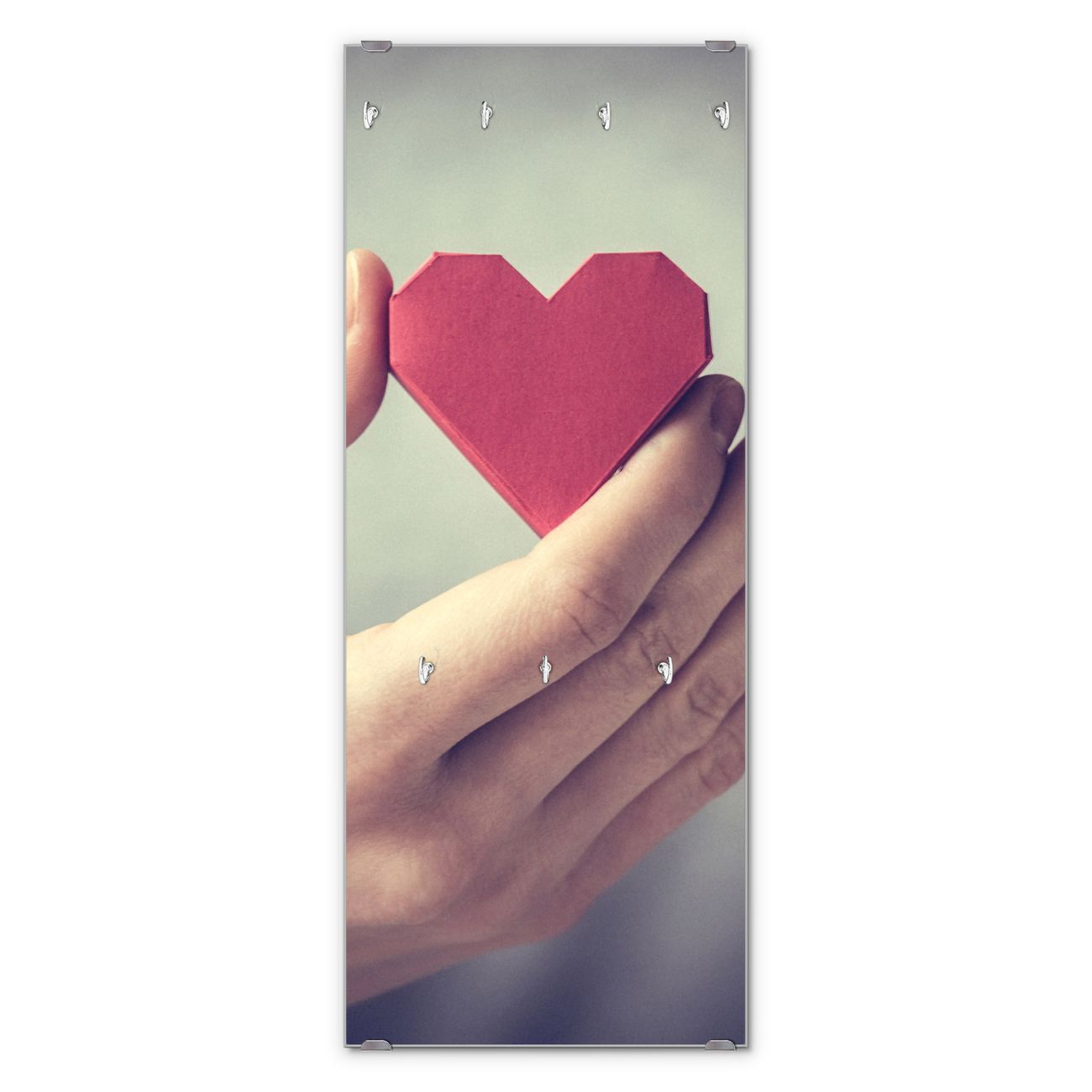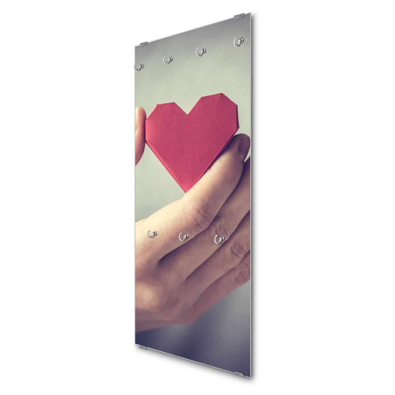 Flurgarderobe Glas 50x125cm Motiv Hand Aufs Herz