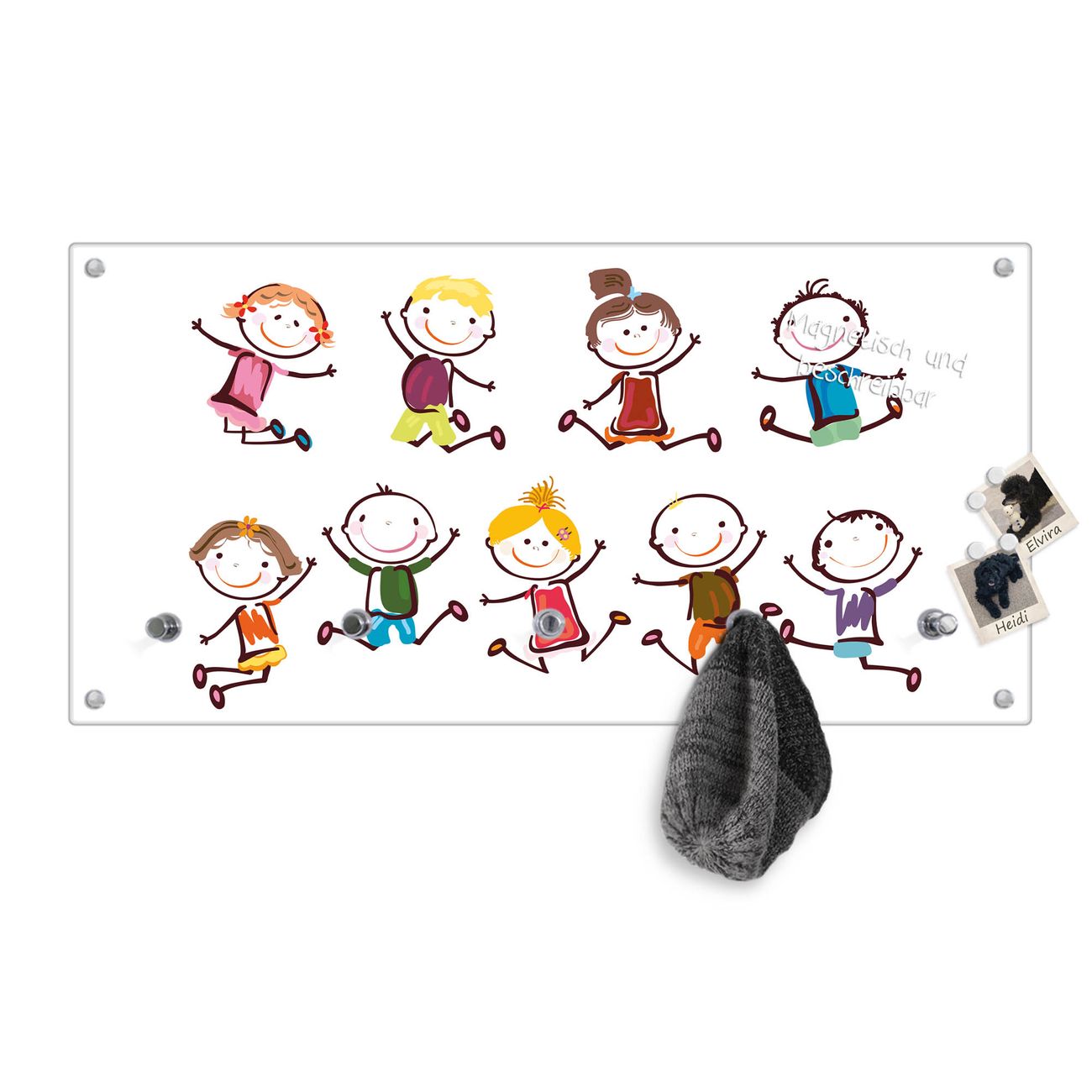Wandgarderobe Glas 80x40cm Motiv Happy Kids