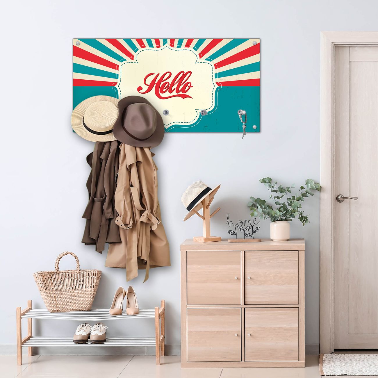 Wandgarderobe Glas 80x40cm Motiv Hello