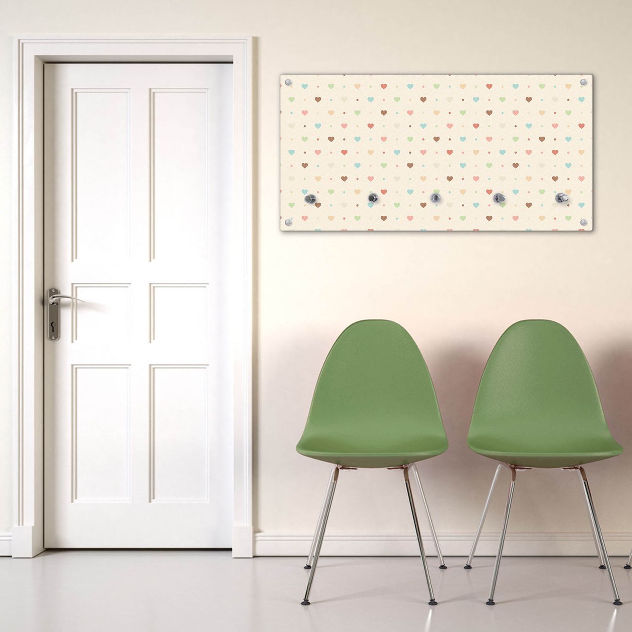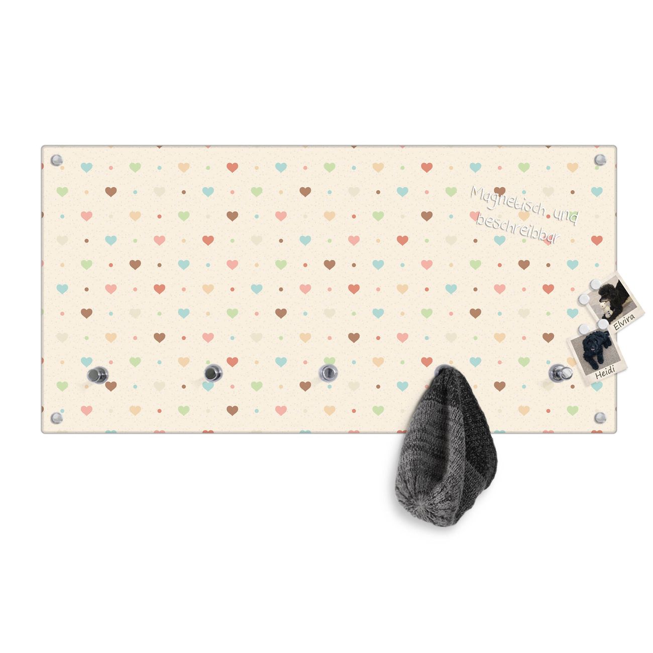 Wandgarderobe Glas 80x40cm Motiv Herzen bunt