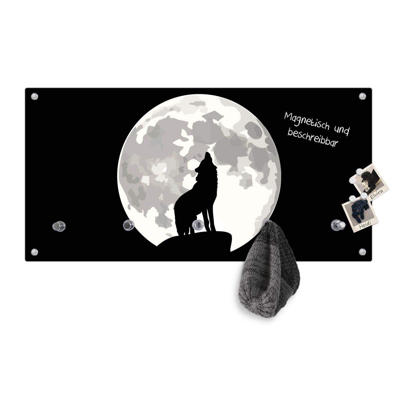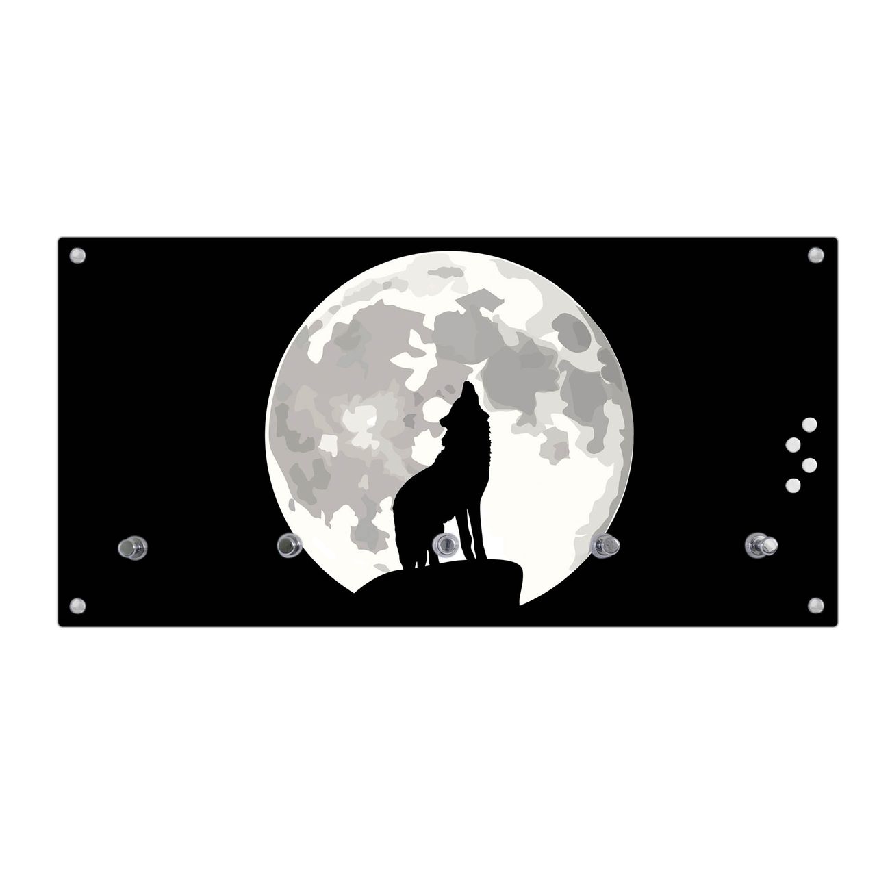 Wandgarderobe Glas 80x40cm Motiv Heulender Wolf SW