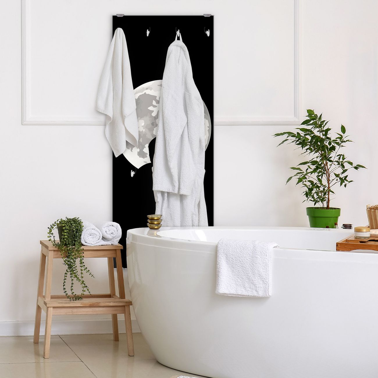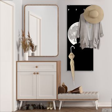 FUNKTION: Die banjado Wandgarderobe mit Motiv Heulender Wolf SW ist Ihr täglicher Begleiter. Zuverlässig hängen hier Ihre Jacken und Mäntel griffbereit. Das Echtglas ist Ihr Paneel auch beschreibbar und wieder abwischbar. DESIGN: Sie erhalten eine Garderobenleiste aus elegantem Echtglas mit dem Farbbrillanten Motiv Heulender Wolf SW hinterklebt. Das Design ist zeitlos klassisch, ohne dabei auf Funktionalität zu verzichten. Suchen Sie aus einer Vielzahl von Motiven das für Ihre Einrichtung Passende aus. DETAILS: Die Flurgarderobe besteht aus 4mm gehärtetem Sicherheitsglas. Sie ist 50cm breit, 125cm hoch und 6cm tief. Die Garderobenhaken zur Selbstmontage präsentieren sich in Edelstahl-Optik, ebenso die Abstandshalter für die Wandmontage. Ihre neue Garderobe ist sofort einsatzbereit. NUTZEN: Ihre neue Garderobe hält nicht nur zuverlässig Ihre Kleidung, sie ist auch optisch ein Blickfang. Durch das Glas können Sie an der Garderobe mit wasserlöslichen Kreidestiften oder Whiteboard-Markern auch Nachrichten hinterlassen. BANJADO: Wir sind ein kleines kreatives Team aus Sachsen und entwickeln Produkte die Design und Funktionalität verbinden sollen. Viel Freude mit Ihrer neuen Garderobe wünscht das banjado-Team!