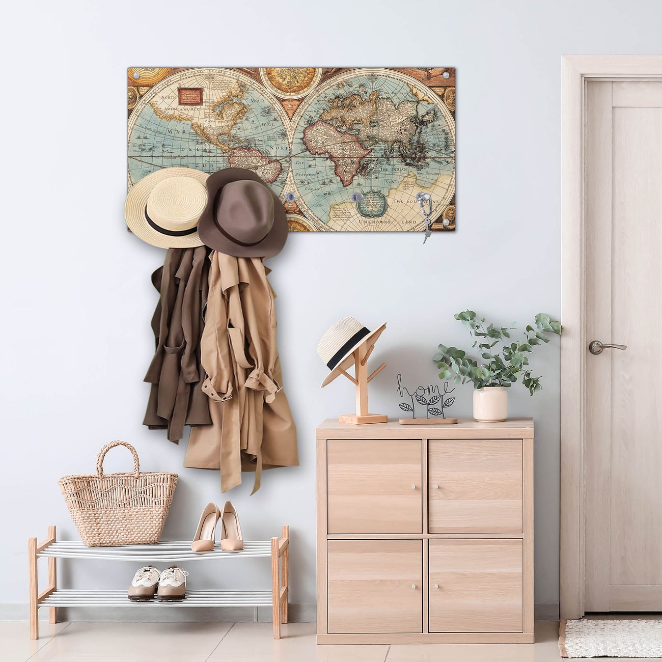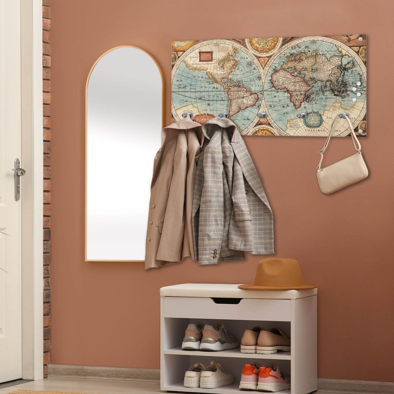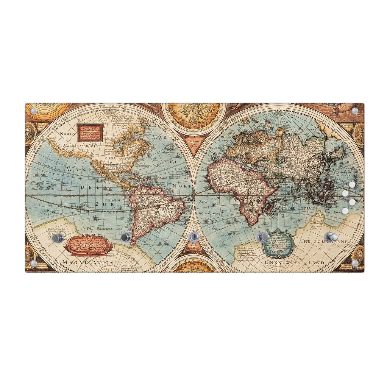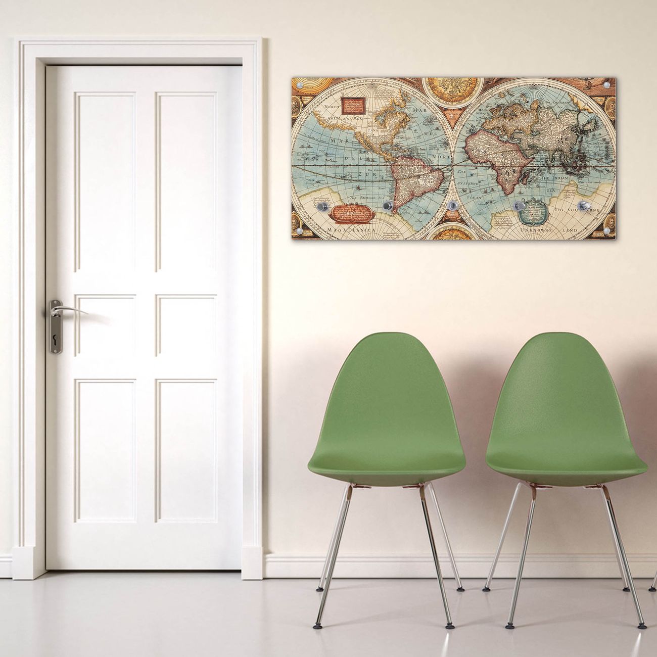 Wandgarderobe Glas 80x40cm Motiv Historische Weltkarte