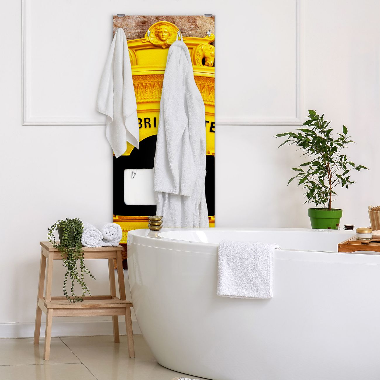 FUNKTION: Die banjado Wandgarderobe mit Motiv Historischer Postkasten ist Ihr täglicher Begleiter. Zuverlässig hängen hier Ihre Jacken und Mäntel griffbereit. Das Echtglas ist Ihr Paneel auch beschreibbar und wieder abwischbar. DESIGN: Sie erhalten eine Garderobenleiste aus elegantem Echtglas mit dem Farbbrillanten Motiv Historischer Postkasten hinterklebt. Das Design ist zeitlos klassisch, ohne dabei auf Funktionalität zu verzichten. Suchen Sie aus einer Vielzahl von Motiven das für Ihre Einrichtung Passende aus. DETAILS: Die Flurgarderobe besteht aus 4mm gehärtetem Sicherheitsglas. Sie ist 50cm breit, 125cm hoch und 6cm tief. Die Garderobenhaken zur Selbstmontage präsentieren sich in Edelstahl-Optik, ebenso die Abstandshalter für die Wandmontage. Ihre neue Garderobe ist sofort einsatzbereit. NUTZEN: Ihre neue Garderobe hält nicht nur zuverlässig Ihre Kleidung, sie ist auch optisch ein Blickfang. Durch das Glas können Sie an der Garderobe mit wasserlöslichen Kreidestiften oder Whiteboard-Markern auch Nachrichten hinterlassen. BANJADO: Wir sind ein kleines kreatives Team aus Sachsen und entwickeln Produkte die Design und Funktionalität verbinden sollen. Viel Freude mit Ihrer neuen Garderobe wünscht das banjado-Team!