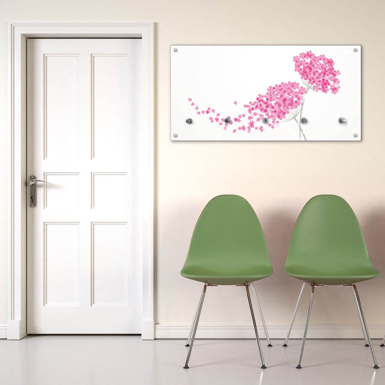 Wandgarderobe Glas 80x40cm Motiv Holunder Pink
