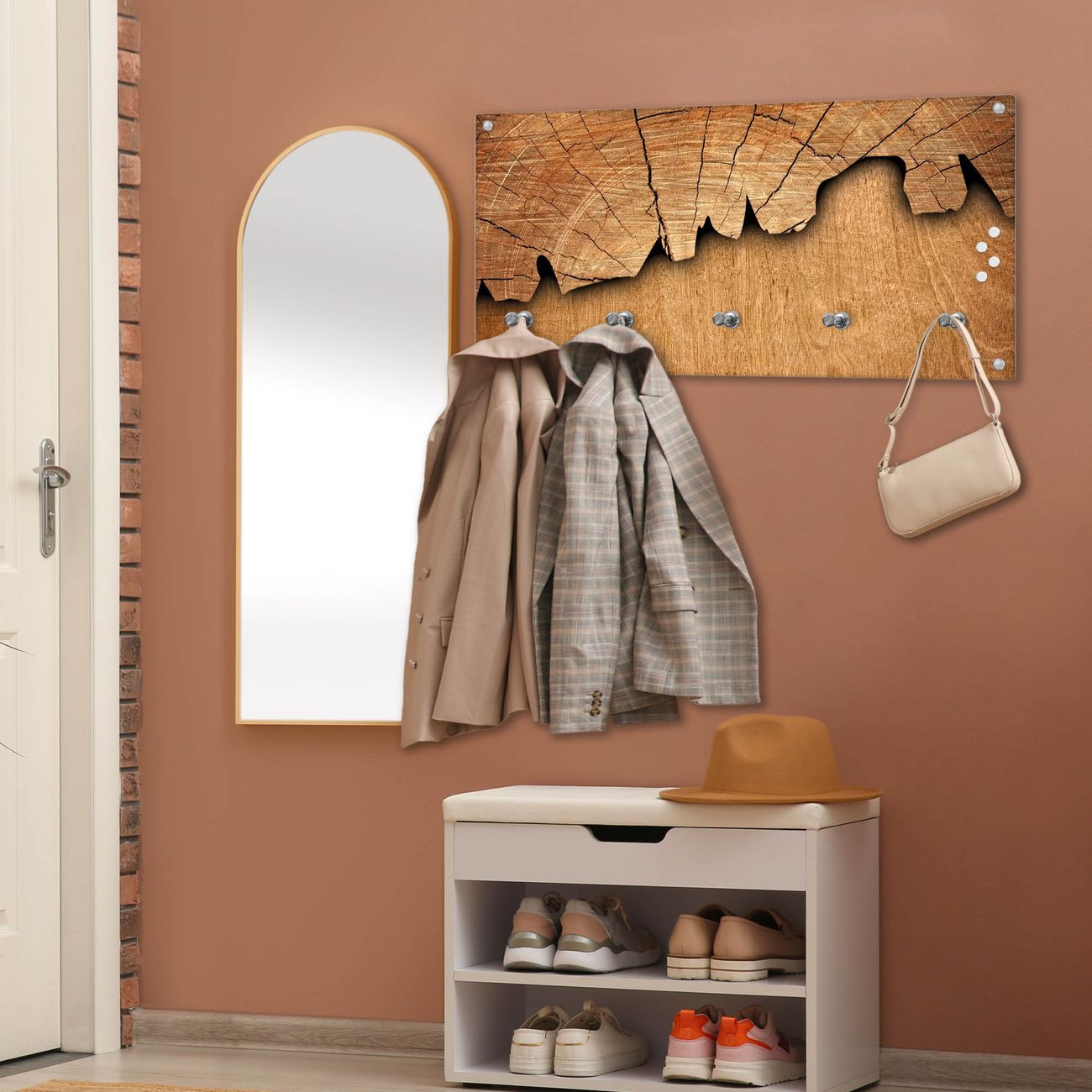 Wandgarderobe Glas 80x40cm Motiv Holz