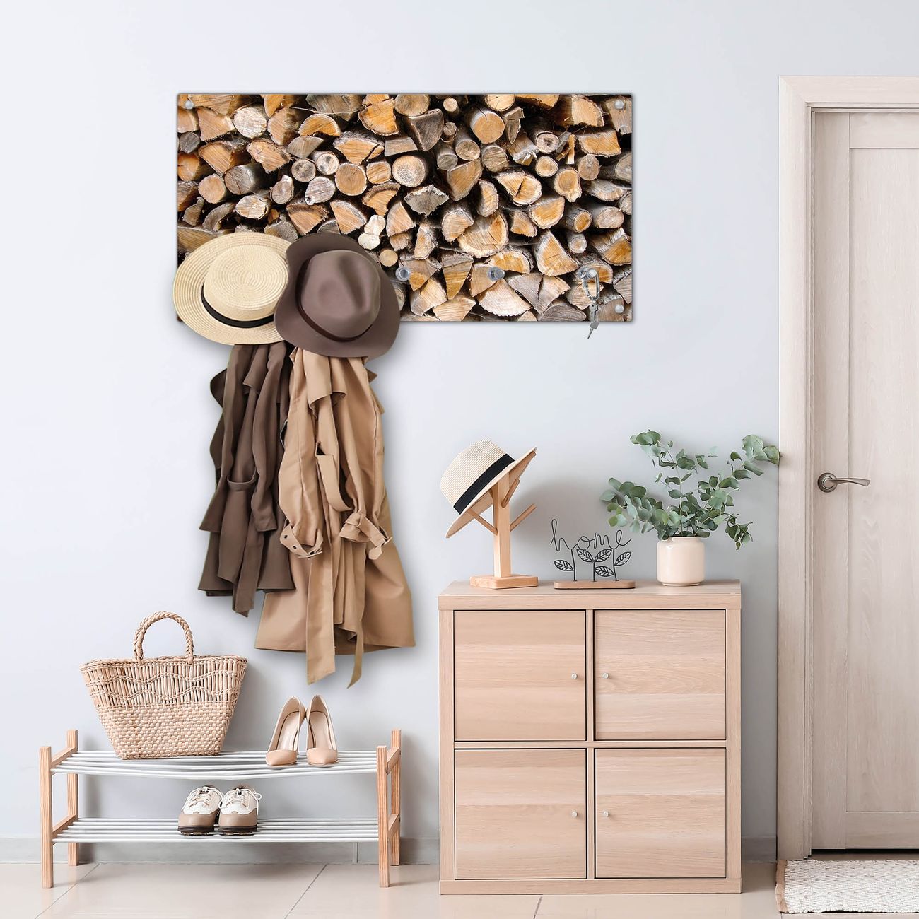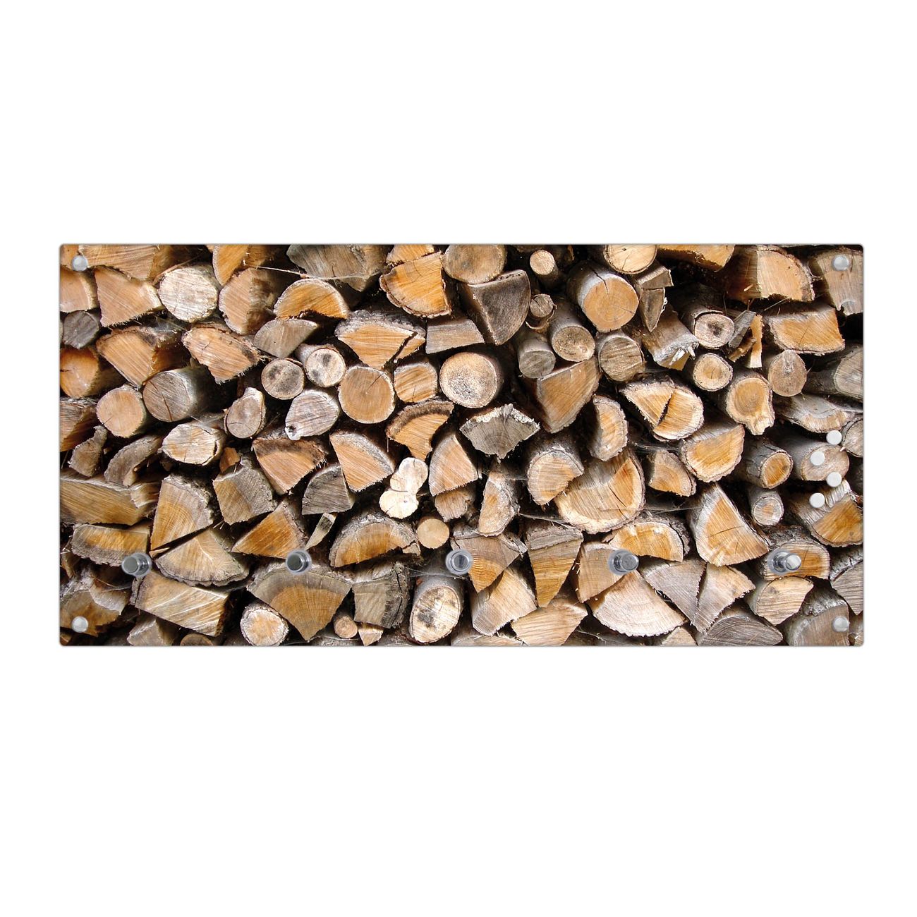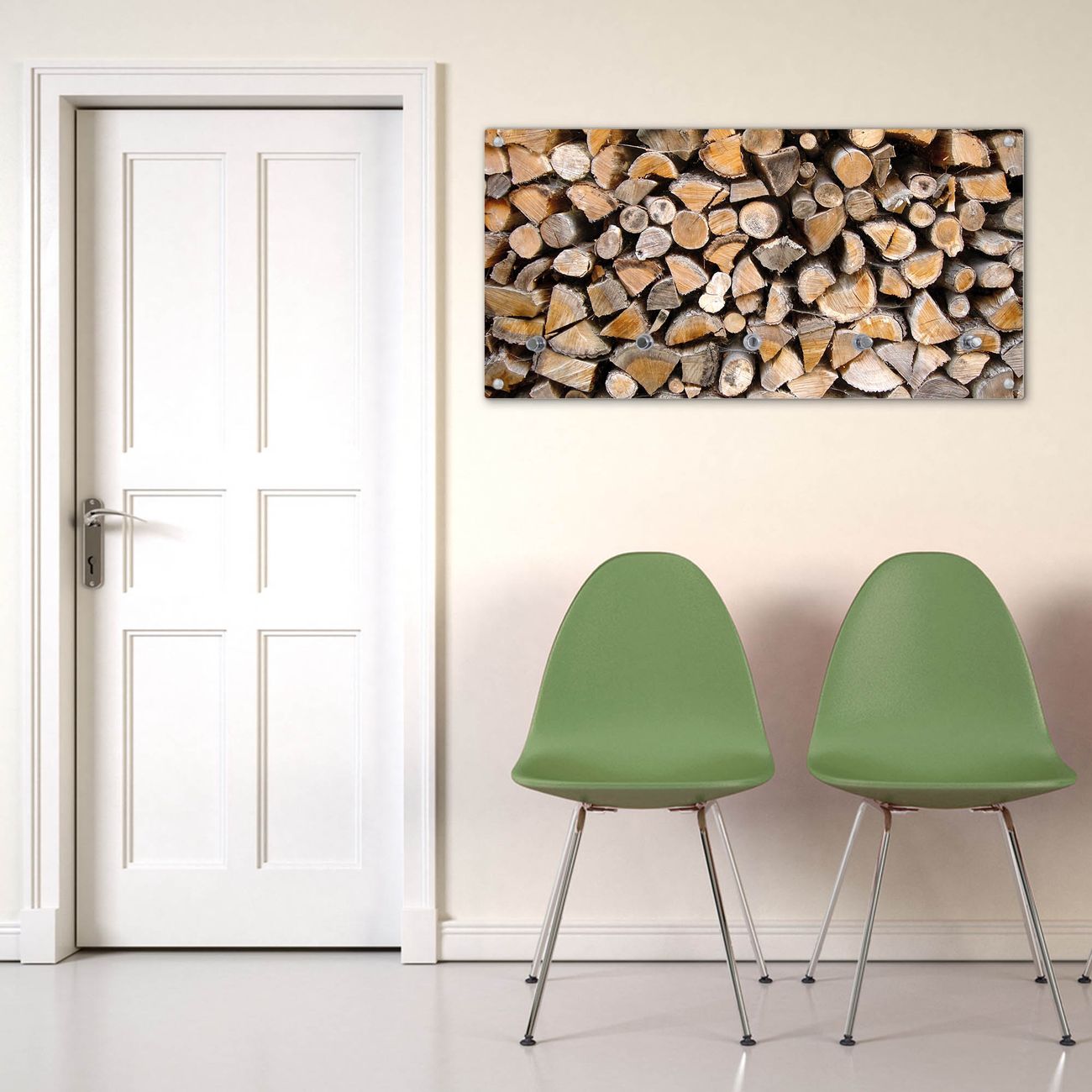 Wandgarderobe Glas 80x40cm Motiv Holzstapel