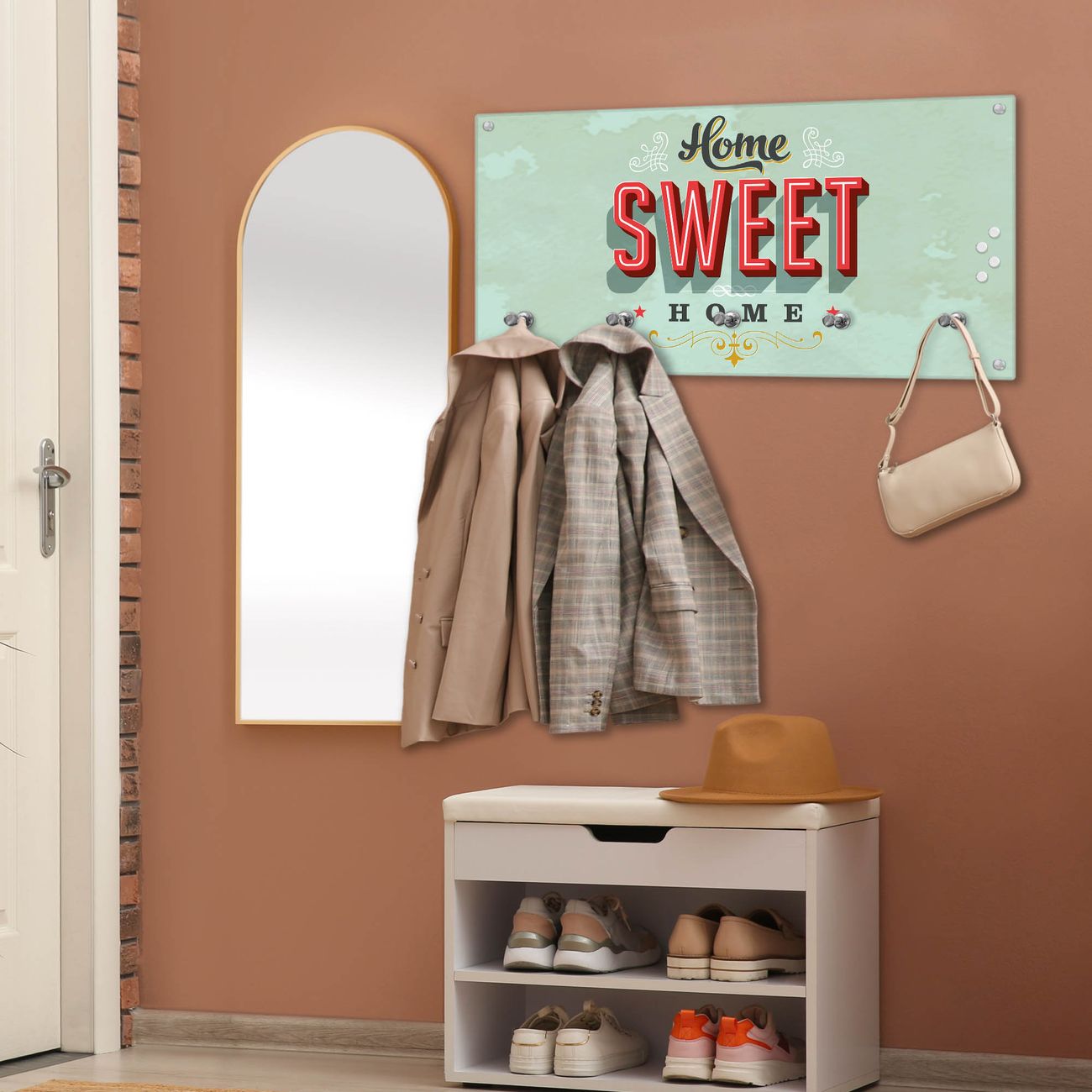 Wandgarderobe Glas 80x40cm Motiv Home Sweet Home