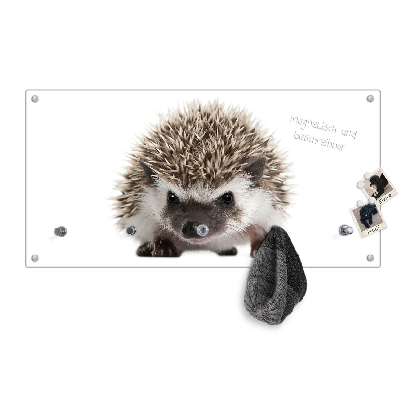 Wandgarderobe Glas 80x40cm Motiv Igel