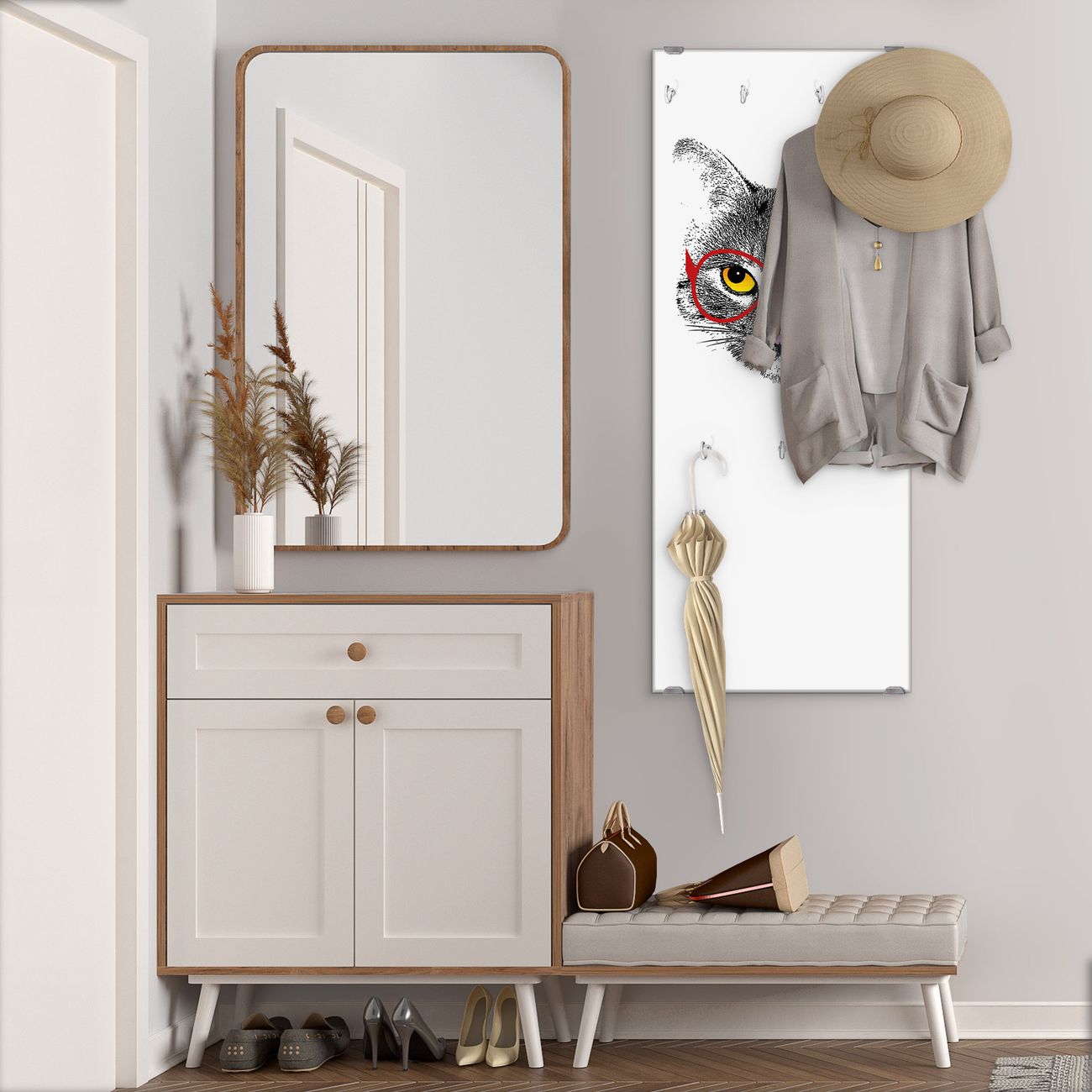 Flurgarderobe Glas 50x125cm Motiv Intellicat