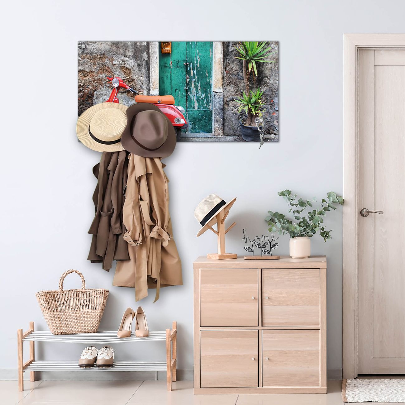 Wandgarderobe Glas 80x40cm Motiv Italienischer Roller