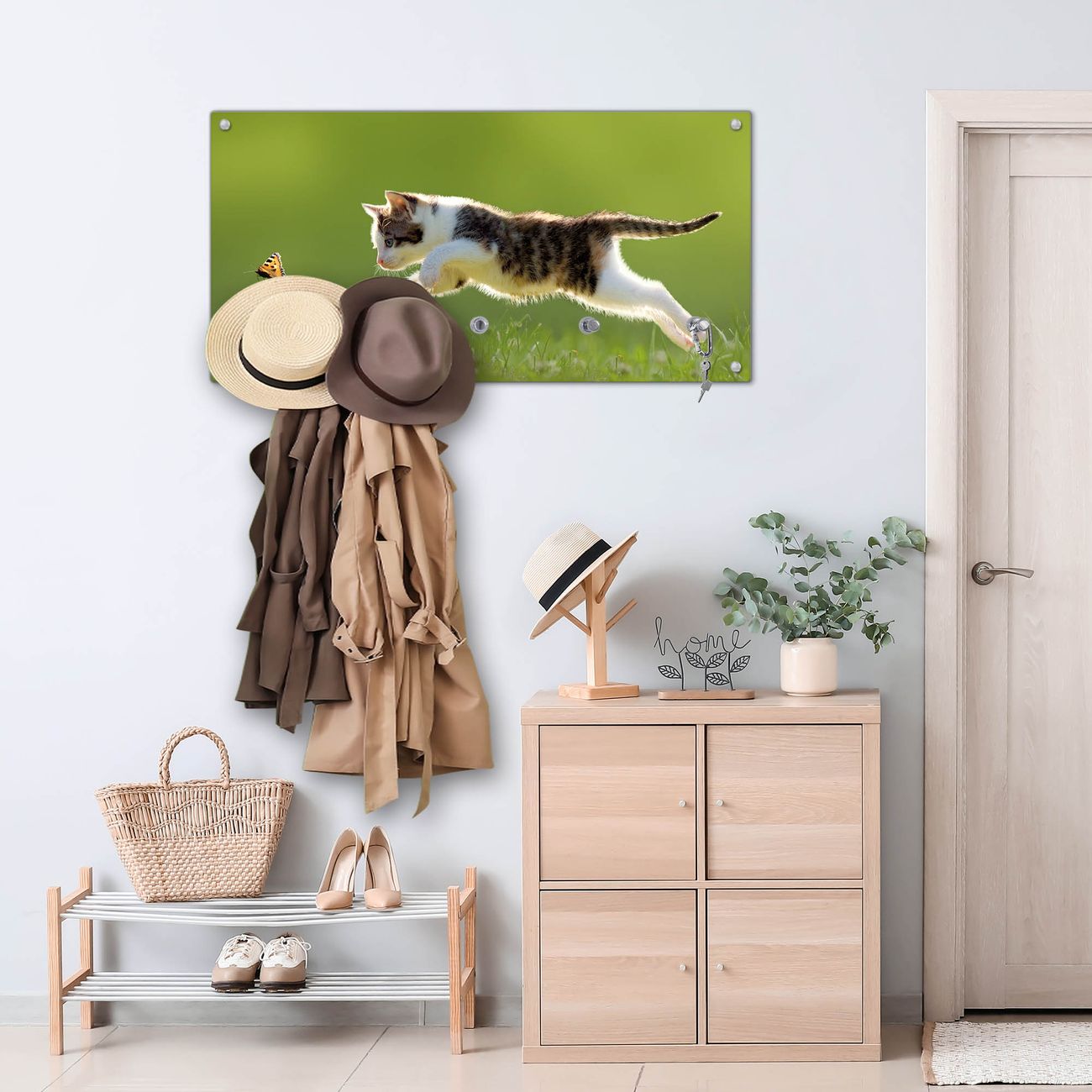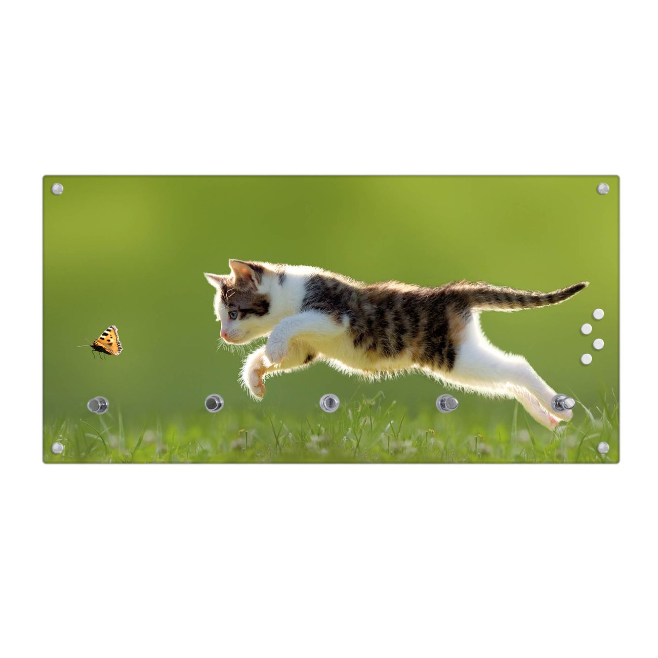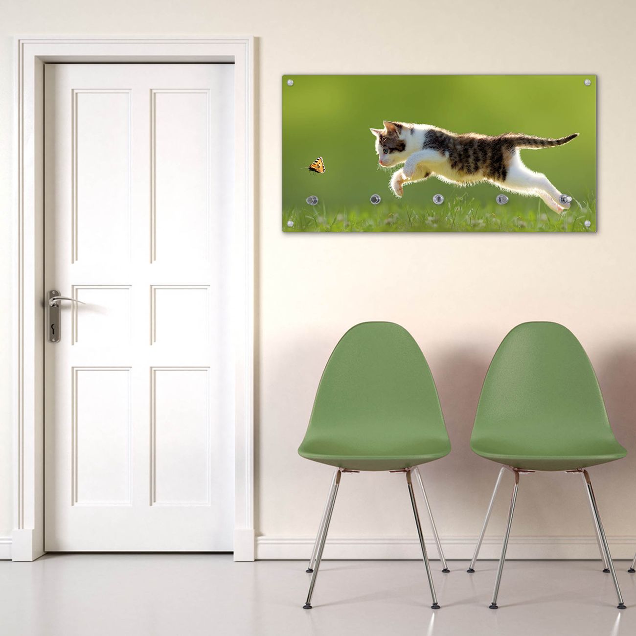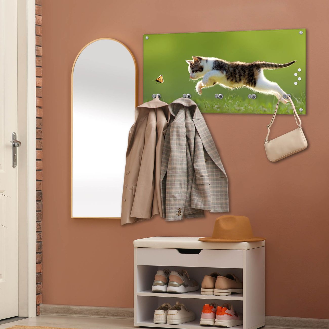 Wandgarderobe Glas 80x40cm Motiv Jagende Katze