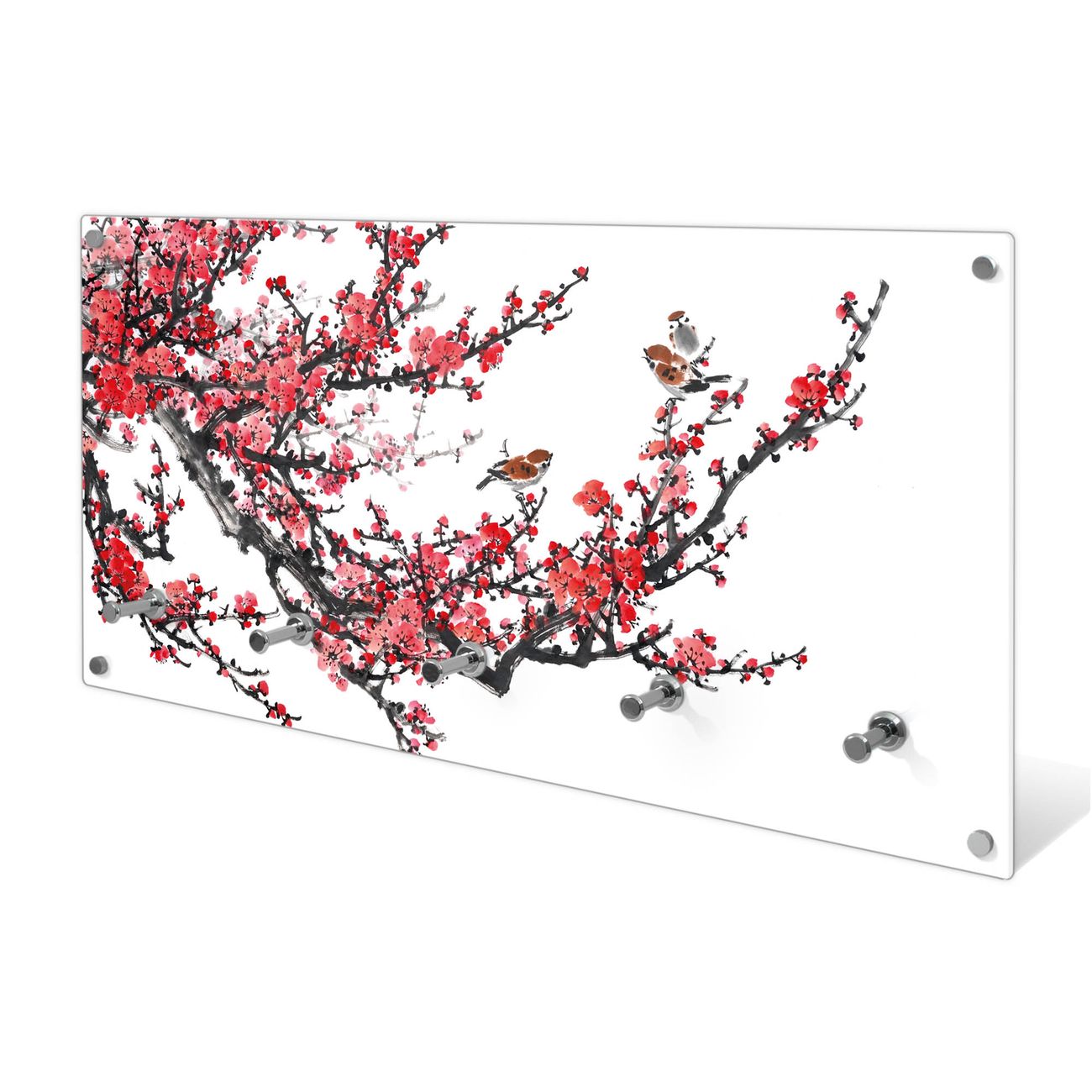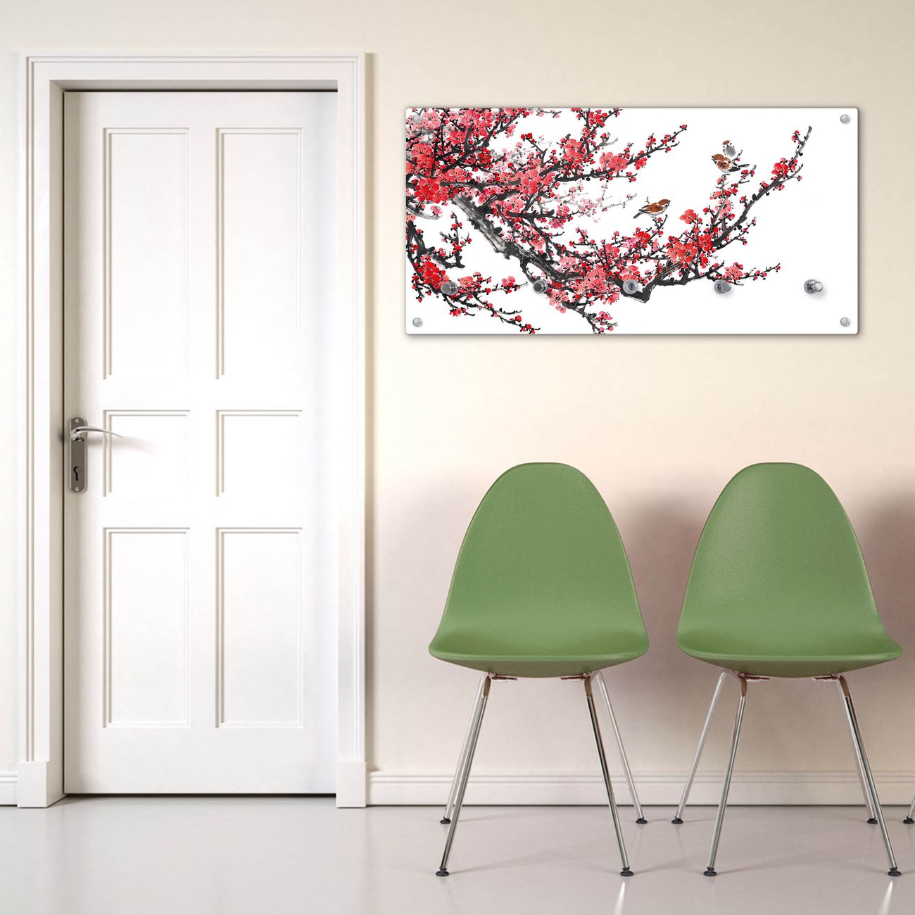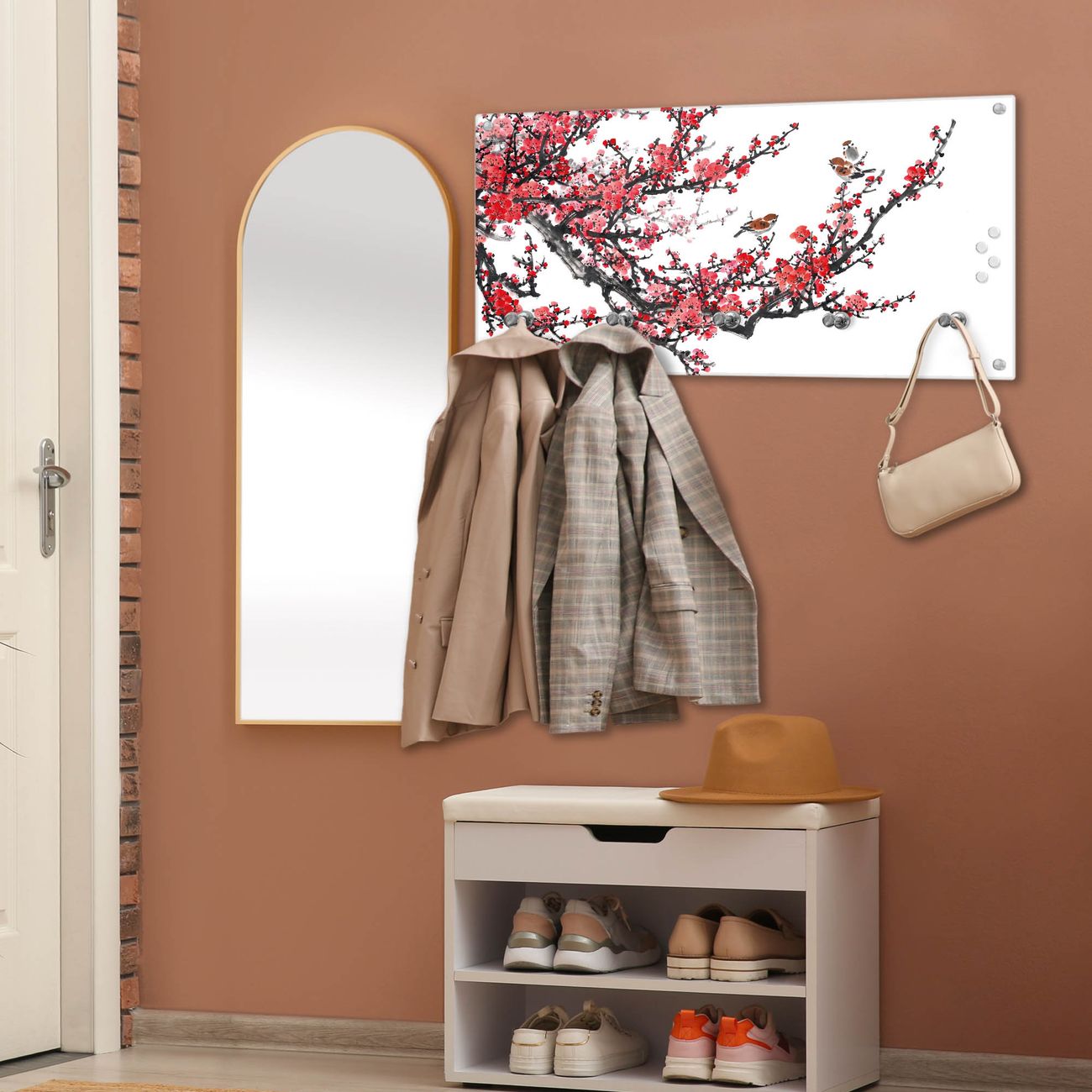 Wandgarderobe Glas 80x40cm Motiv Japanische Blüten 1