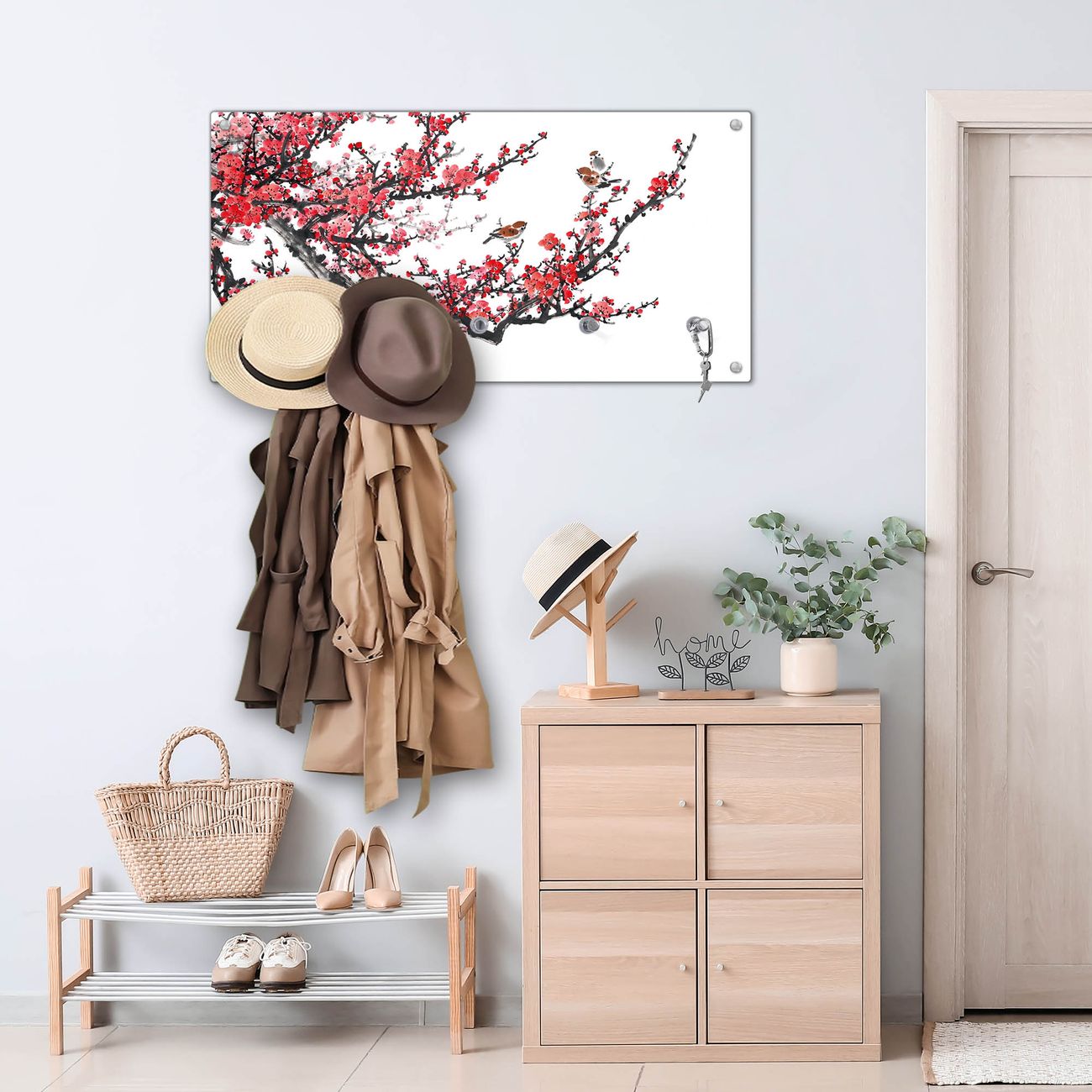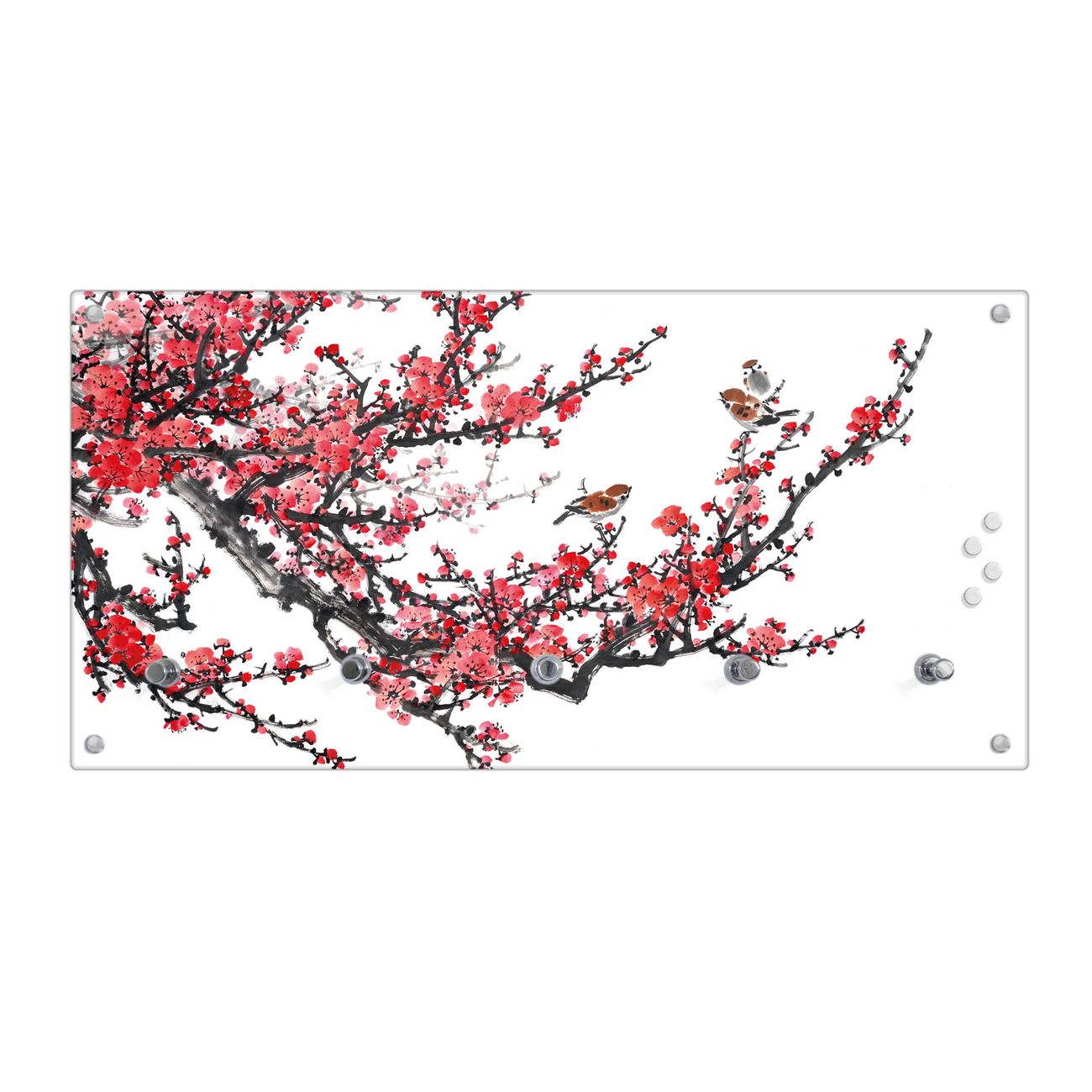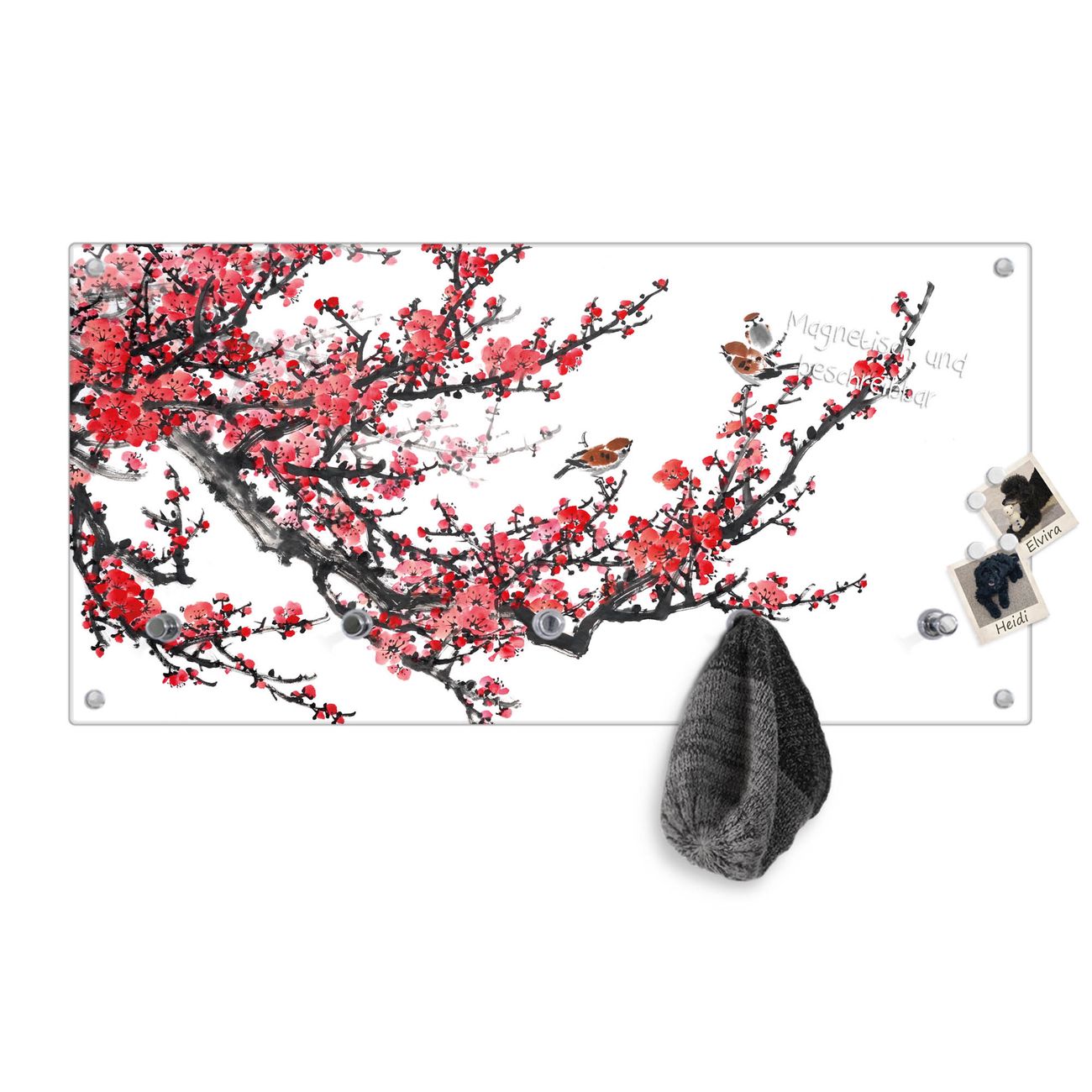 Wandgarderobe Glas 80x40cm Motiv Japanische Blüten 1