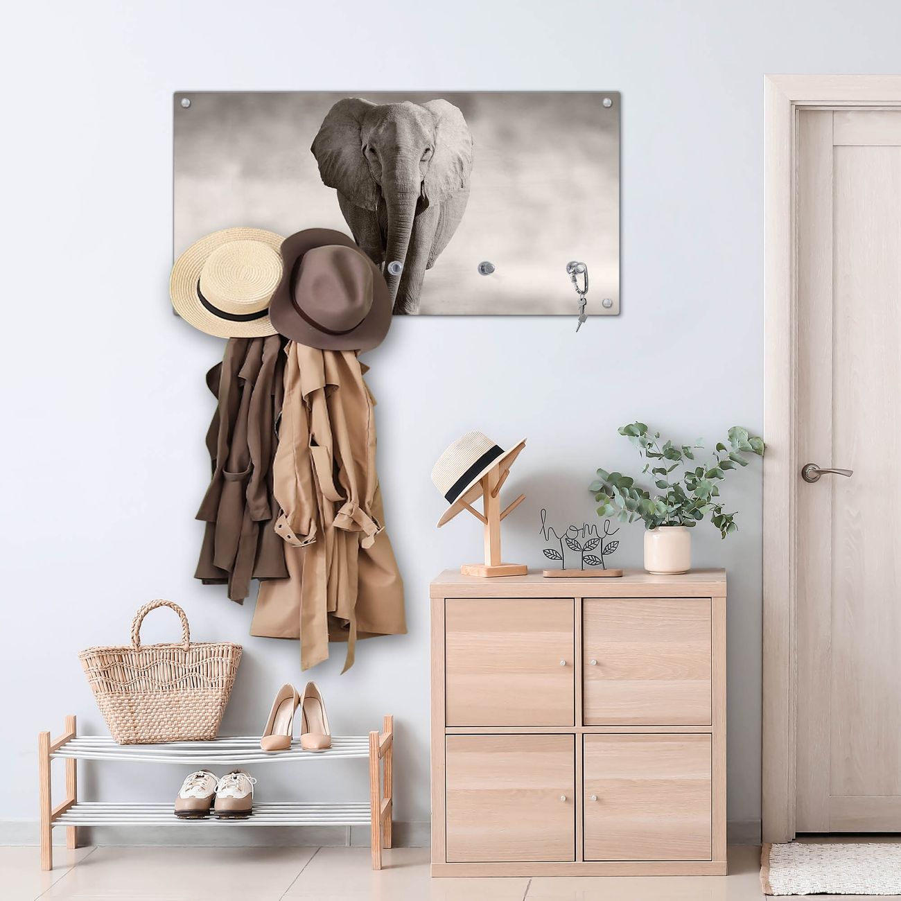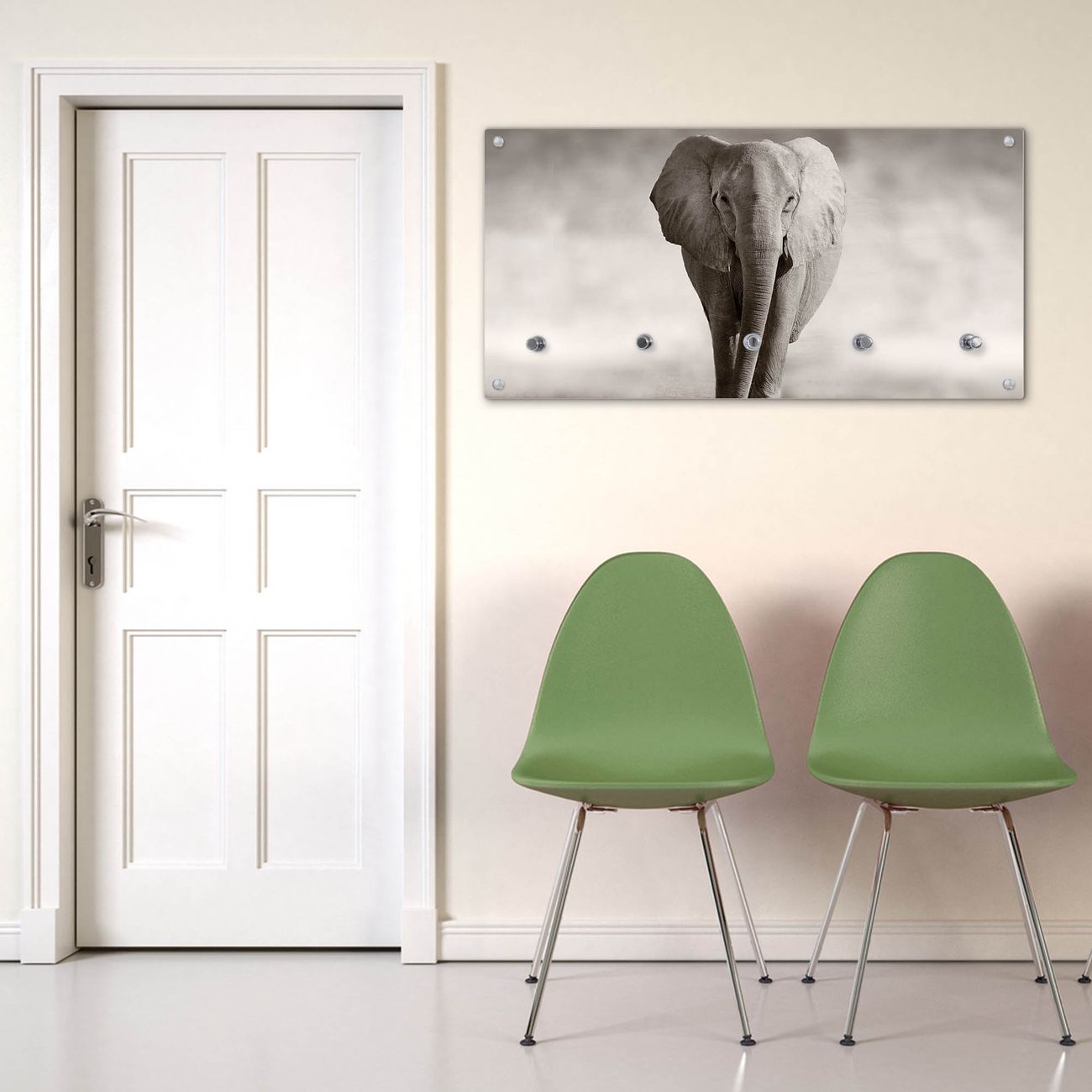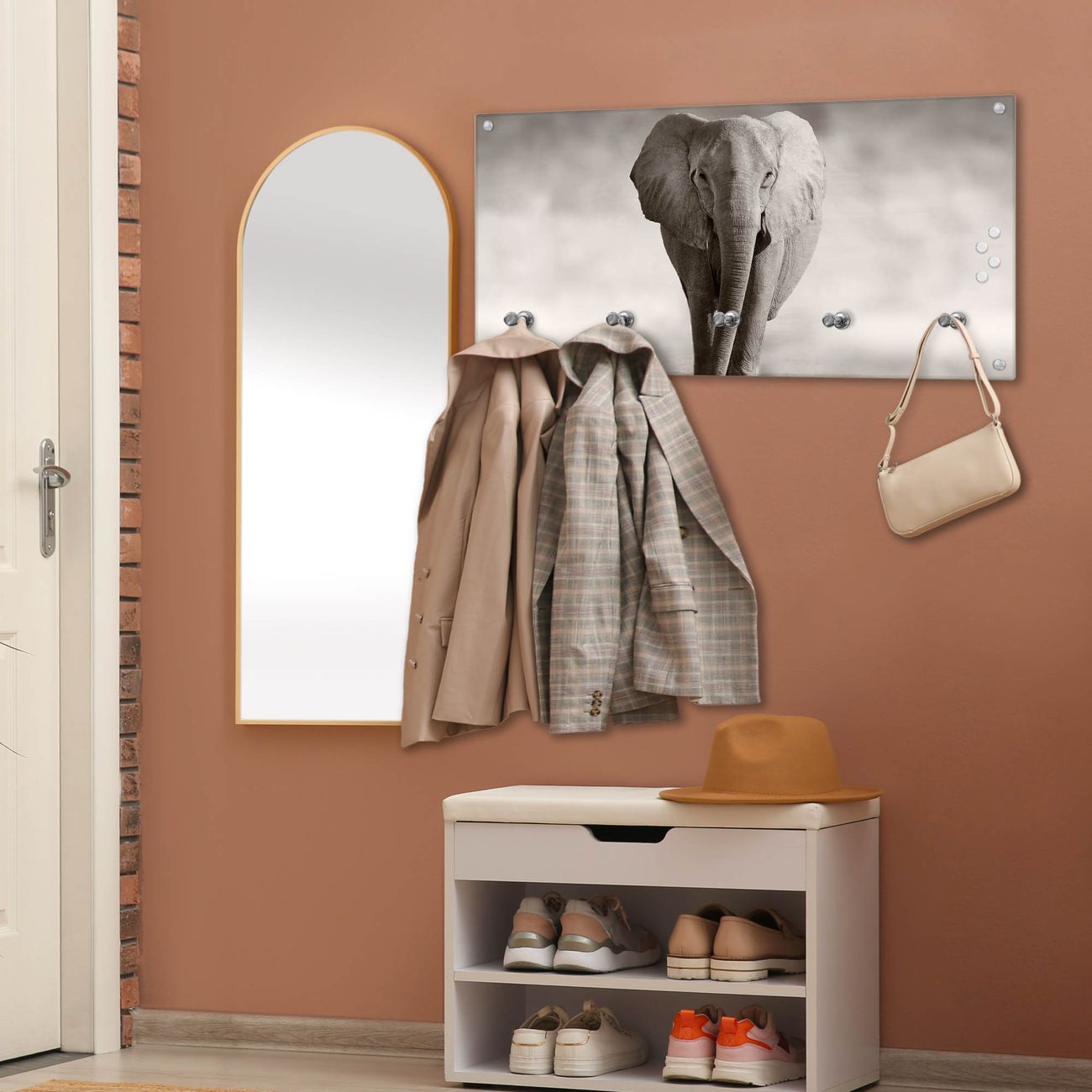 Bitte beachten Sie, dass an dieser Garderobe nur starke Neodym-Magnete halten! FUNKTION: Die banjado Wandgarderobe mit Motiv Joseline ist Ihr täglicher Begleiter. Zuverlässig hängen hier Ihre Jacken und Mäntel griffbereit. Gleichzeitig ist die Design Garderobe magnetisch, Sie können Notizen anheften und durch das Echtglas ist Ihr Paneel auch beschreibbar und wieder abwischbar. DESIGN: Sie erhalten eine Garderobenleiste aus elegantem Echtglas mit dem Farbbrillanten Motiv Joseline hinterklebt. Das Design ist zeitlos klassisch, ohne dabei auf Funktionalität zu verzichten. Suchen Sie aus einer Vielzahl von Motiven das für Ihre Einrichtung Passende aus. DETAILS: Die Flurgarderobe besteht aus 4mm gehärtetem Sicherheitsglas. Sie ist 80cm breit, 40cm hoch und 6cm tief. Die Garderobenhaken zur Selbstmontage präsentieren sich in Edelstahl-Optik, ebenso die Abstandshalter für die Wandmontage. Ihre neue Garderobe ist sofort einsatzbereit. NUTZEN: Ihre neue Garderobe hält nicht nur zuverlässig Ihre Kleidung, sie ist auch optisch ein Blickfang. Durch die magnetische Wirkung können Sie mit 4 beigefügten extrastarken Neodym-Magneten Notizen anheften und mit wasserlöslichen Kreidestiften oder Whiteboard-Markern auch Nachrichten hinterlassen. BANJADO: Wir sind ein kleines kreatives Team aus Sachsen und entwickeln Produkte die Design und Funktionalität verbinden sollen. Viel Freude mit Ihrer neuen Garderobe wünscht das banjado-Team!