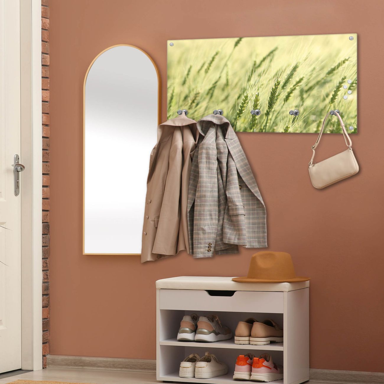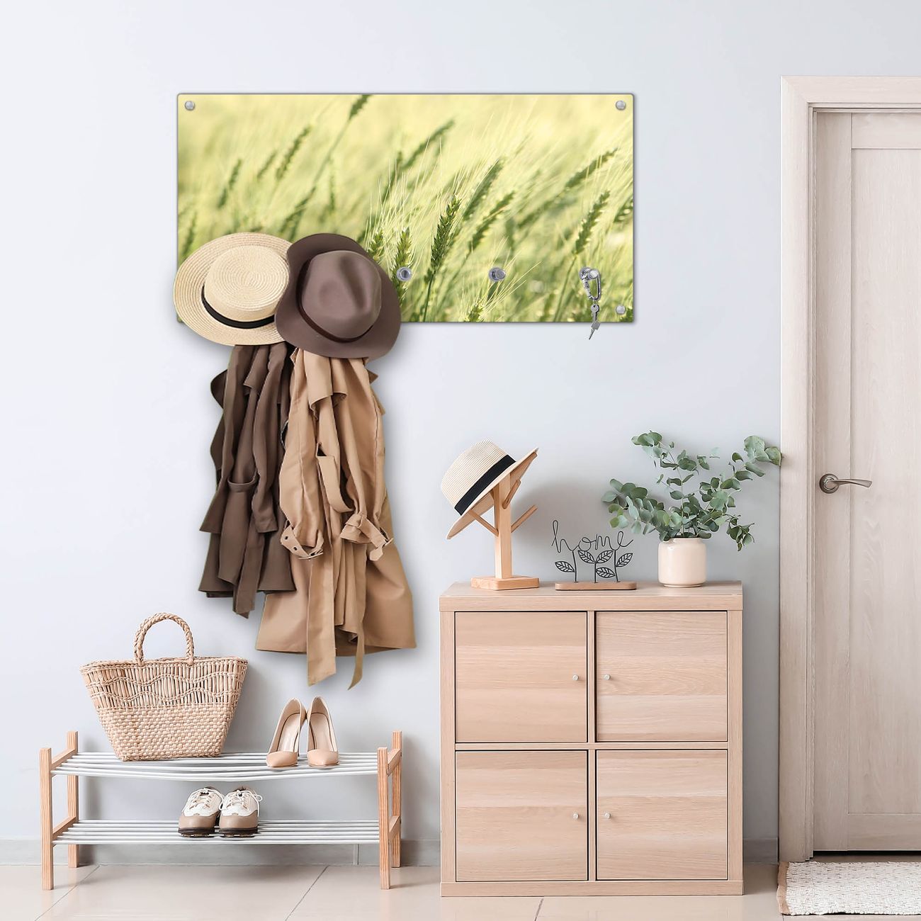 Wandgarderobe Glas 80x40cm Motiv Junges Getreide