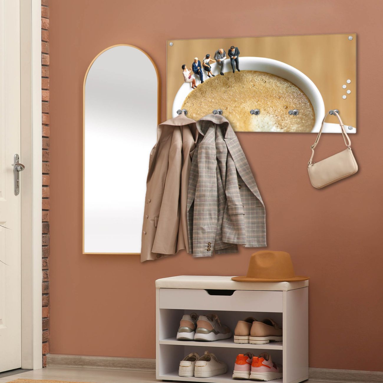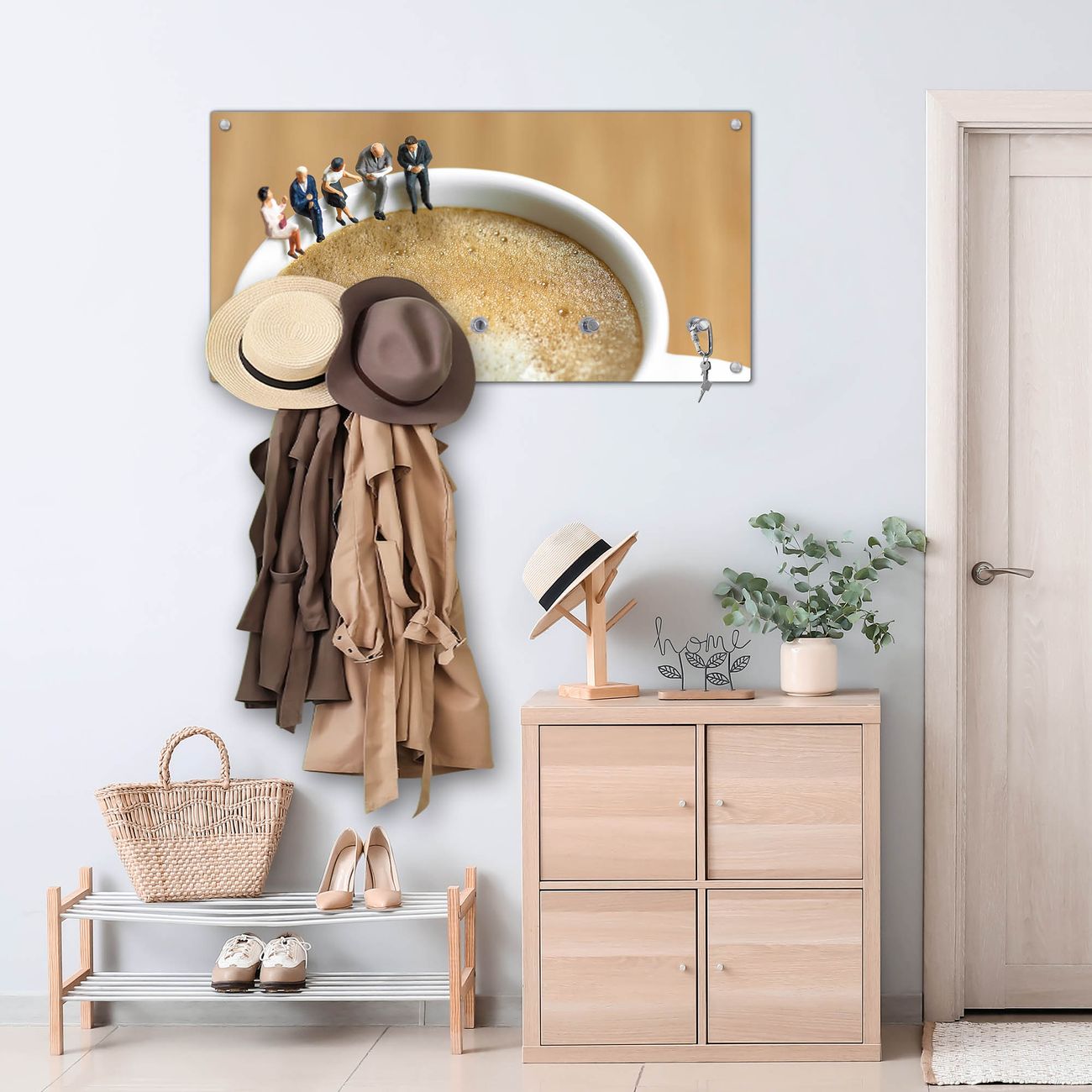 Wandgarderobe Glas 80x40cm Motiv Kaffeepause