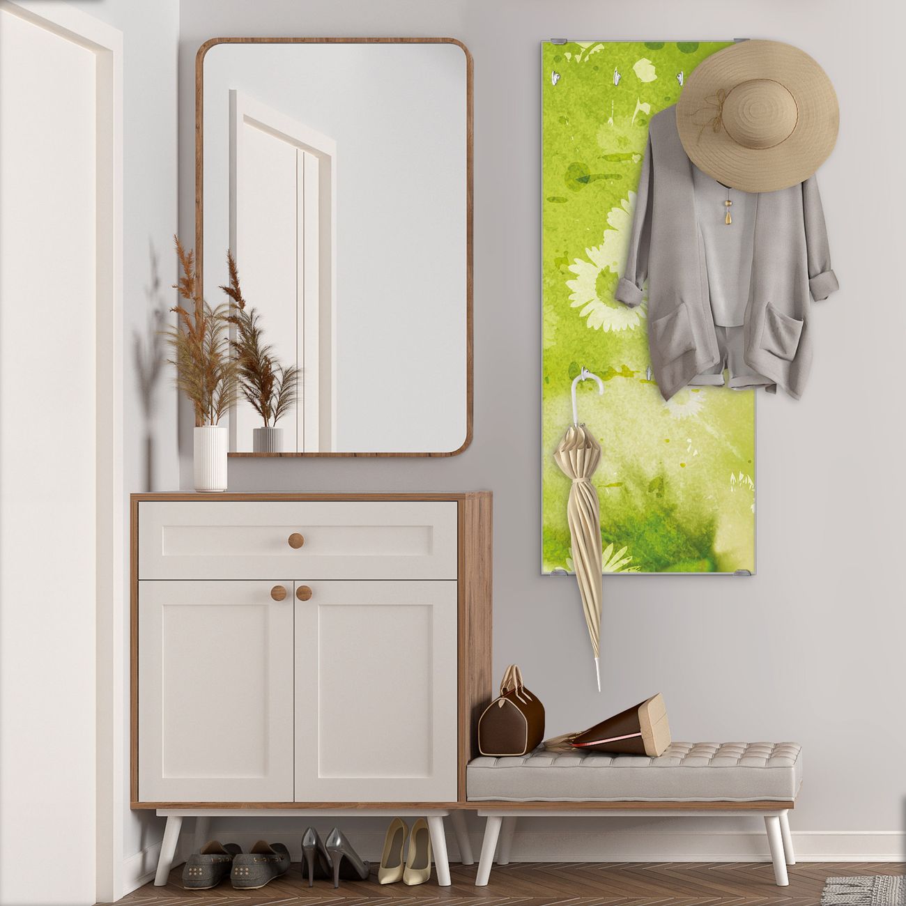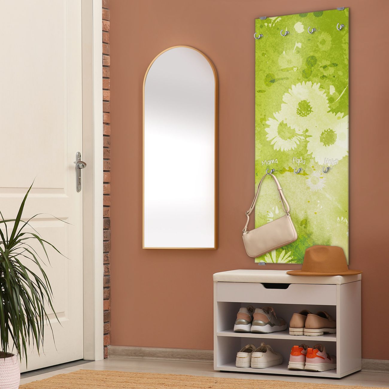 Flurgarderobe Glas 50x125cm Motiv Kamille Grün